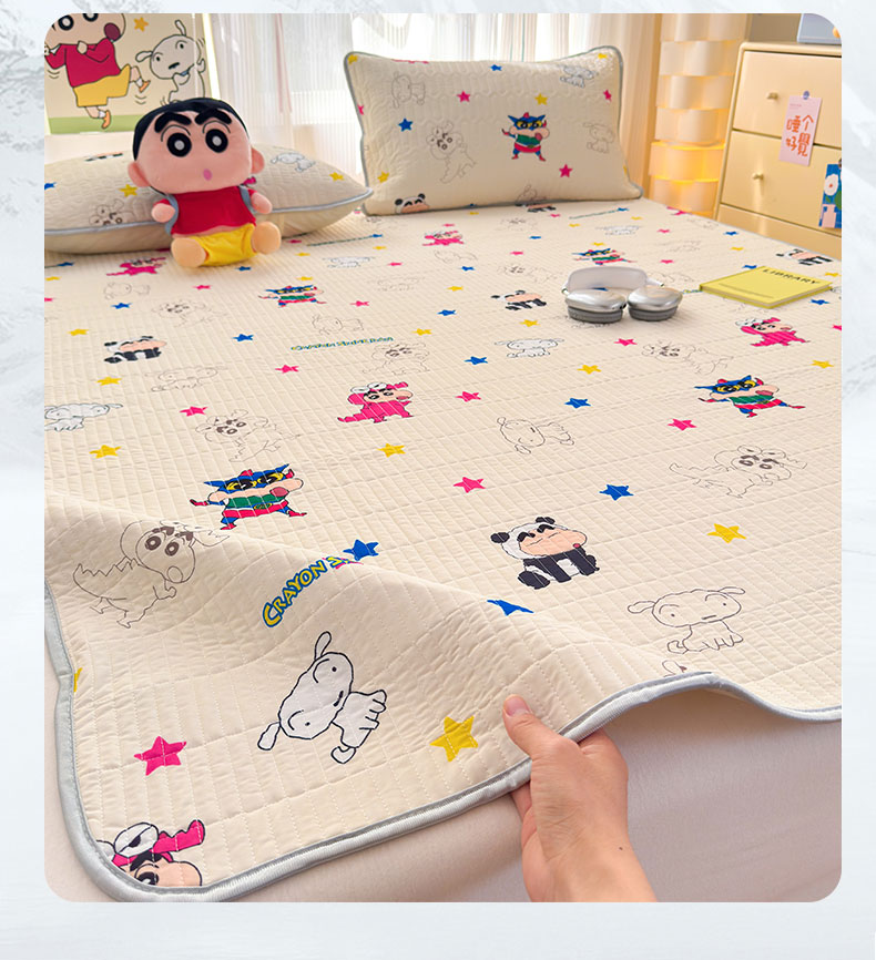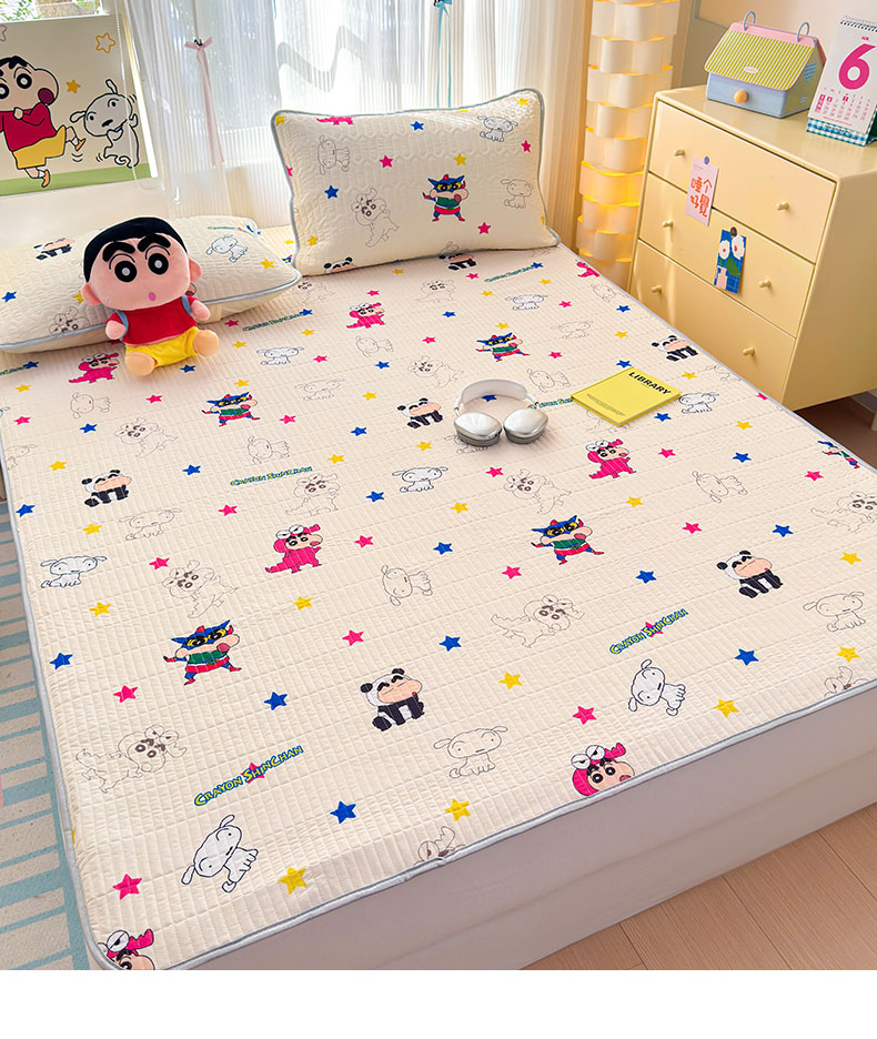 (总)桃子家居 2026新款A类蜡笔小新授权数码印花小冰皮仿锦氨凉感凉席夏被组合夏被四件套