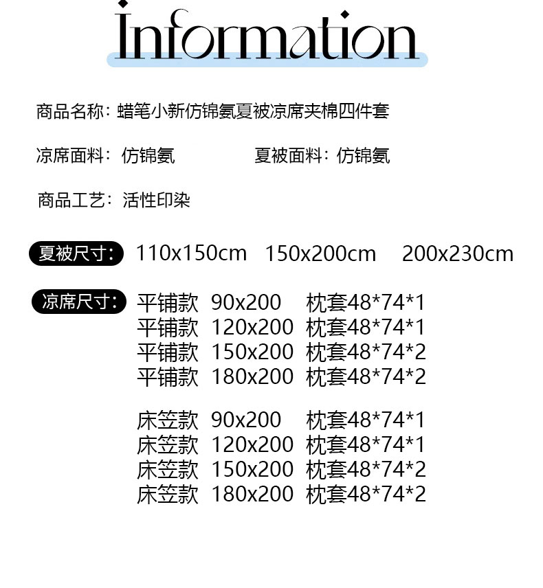 200x230cm单夏被+150x200cm床笠款凉席+枕套一对