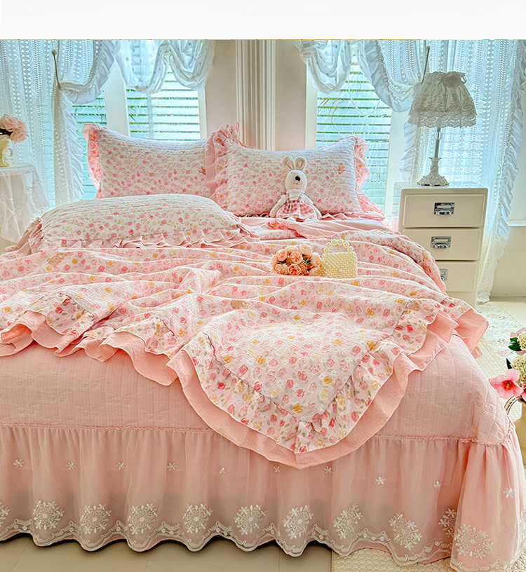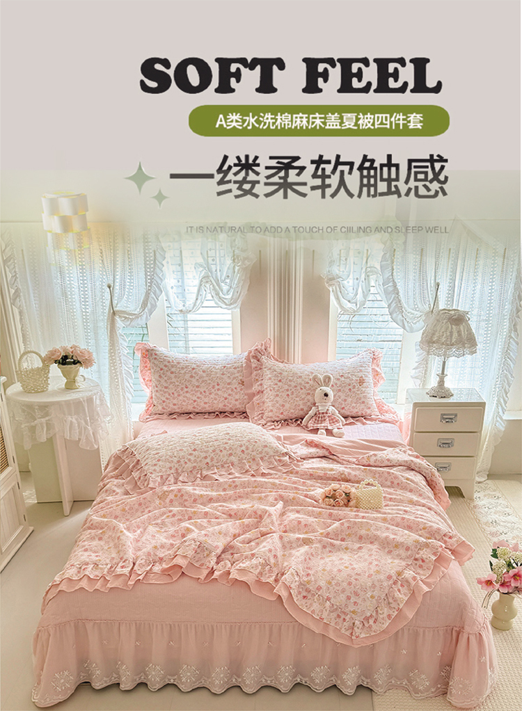 (总)苏米娜2026韩版双层花边云朵棉木棉皱皱纱夏被床盖款四件套单夏被-小清新系列