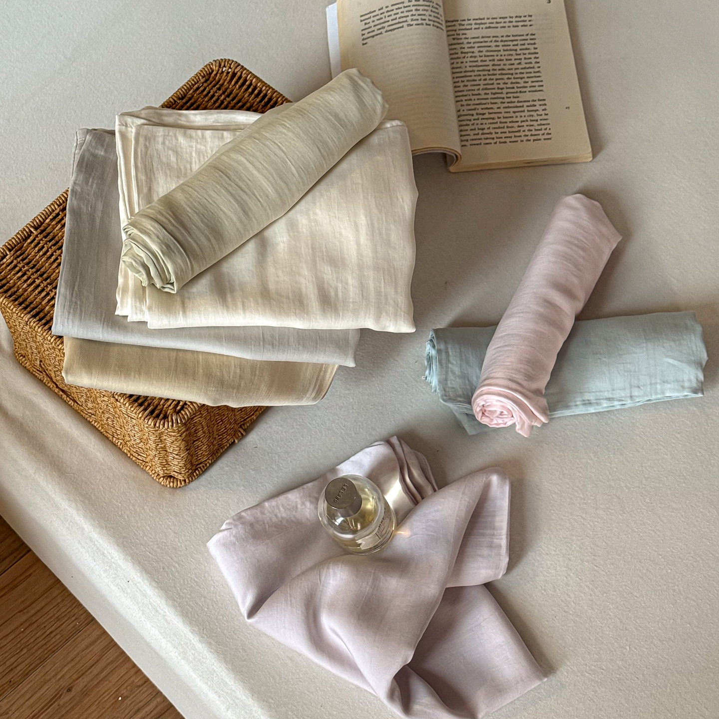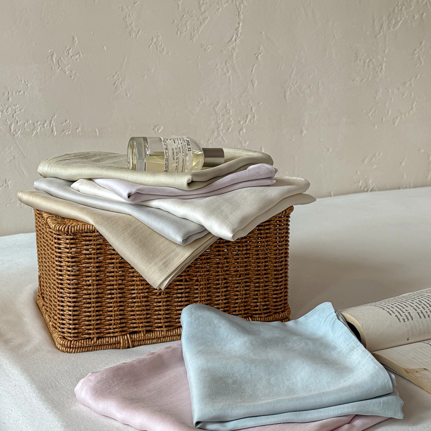 • 91家纺网 家纺一手货源 找家纺 (总)时光里 2026新款60支水洗天丝单床笠 床笠单件床笠单品,组合图仅供展示不可下单,贝卡绿,晴山蓝,乳白色,香槟金,星光粉,优蜜粉,月影灰