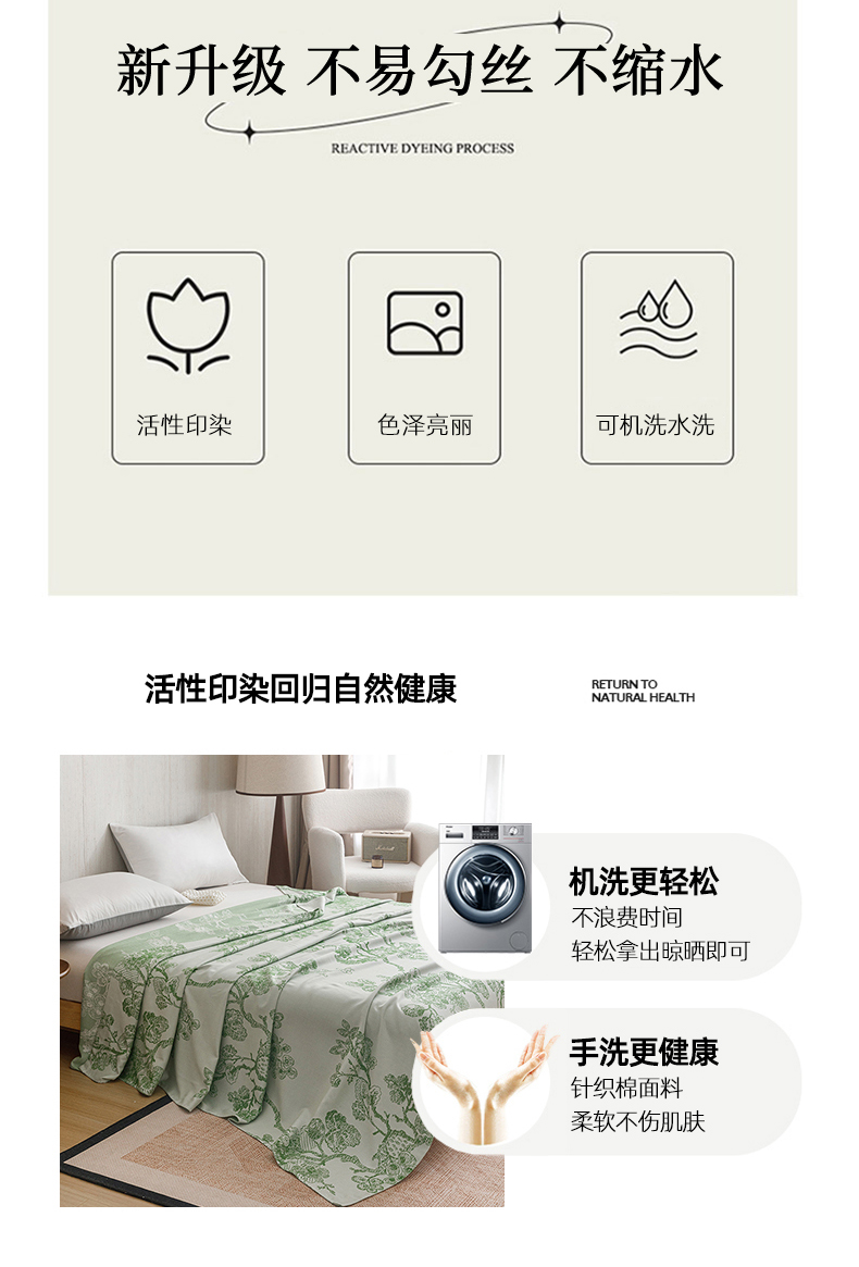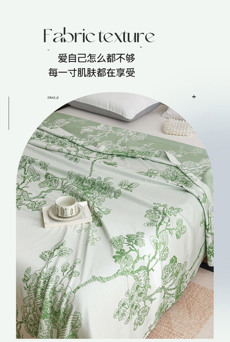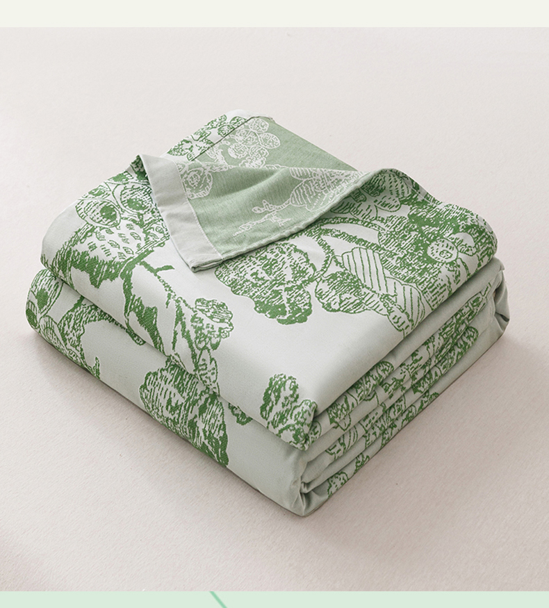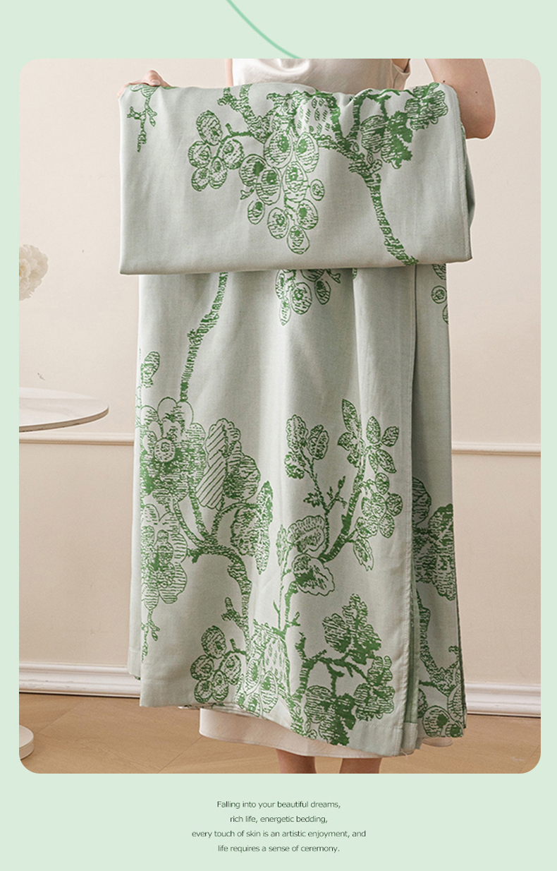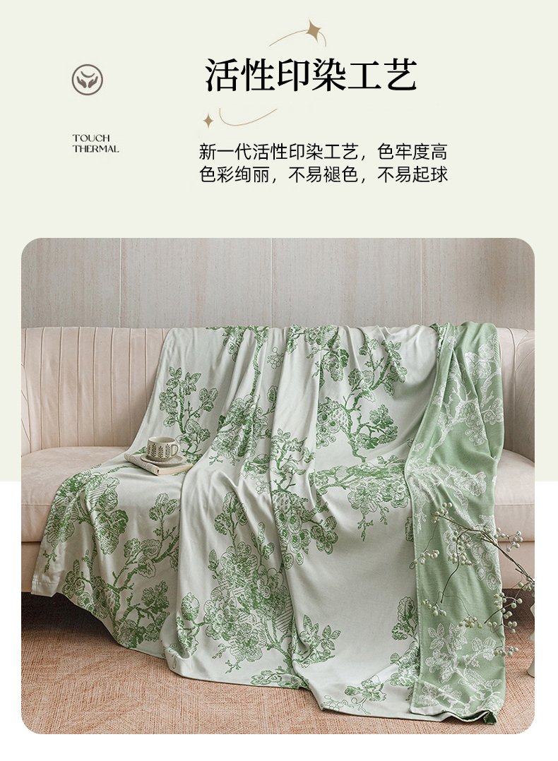 商品名称:悦然毛巾被 2026新款竹纤维冷感毯盖毯再生素纤维休闲夏被毛巾被夏凉被空调被 浪缦花开绿