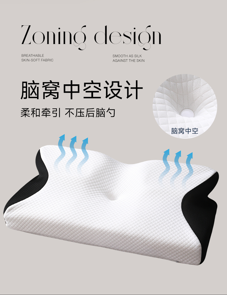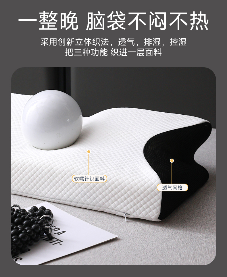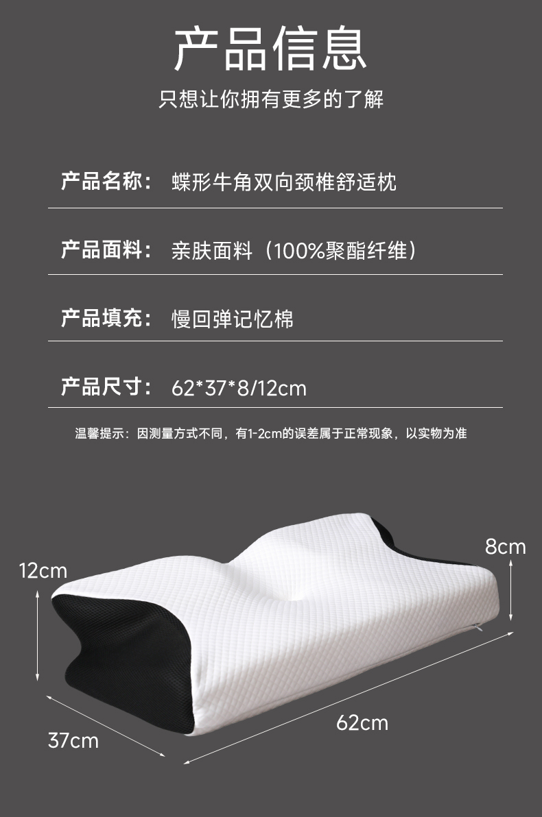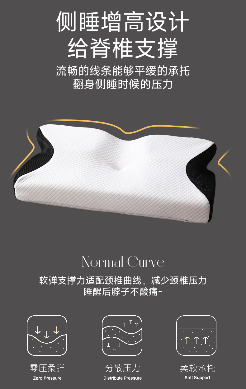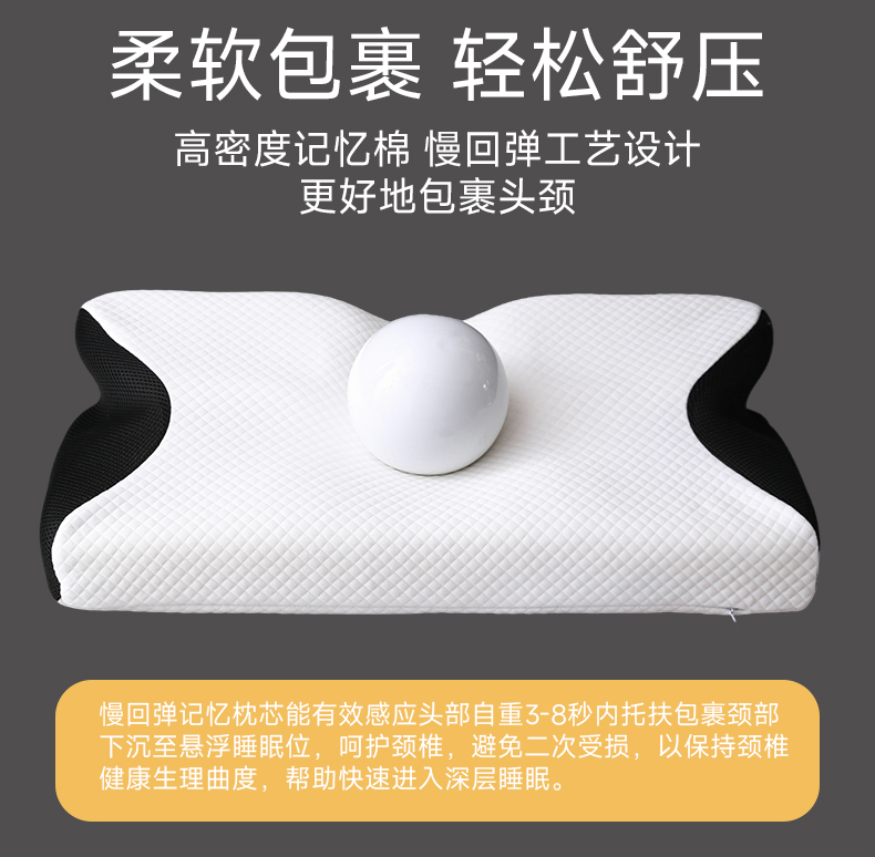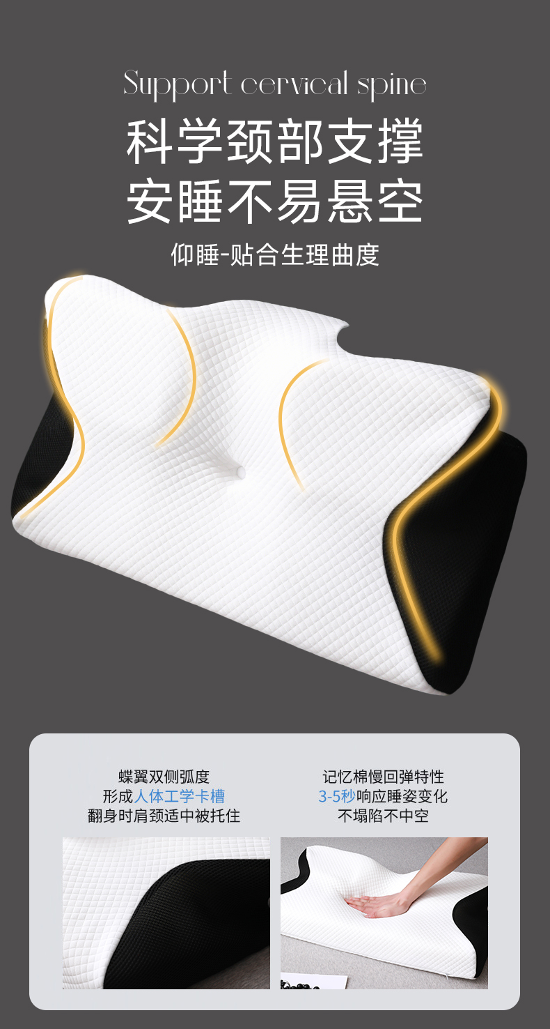 商品名称:圣靓家纺 2026新款跨境外贸飞机枕小牛角枕蝶形记忆枕记忆棉枕头枕芯颈椎枕蝴蝶护颈枕 飞机枕小牛角枕黑色