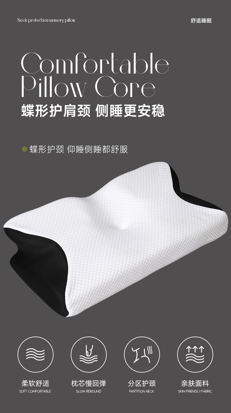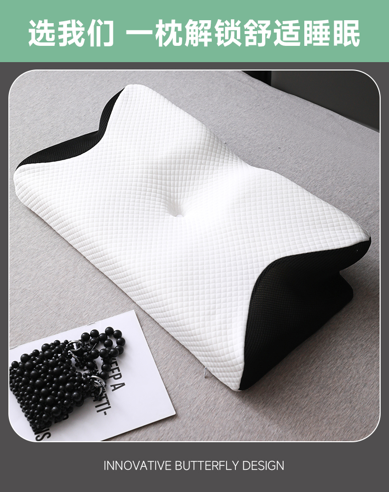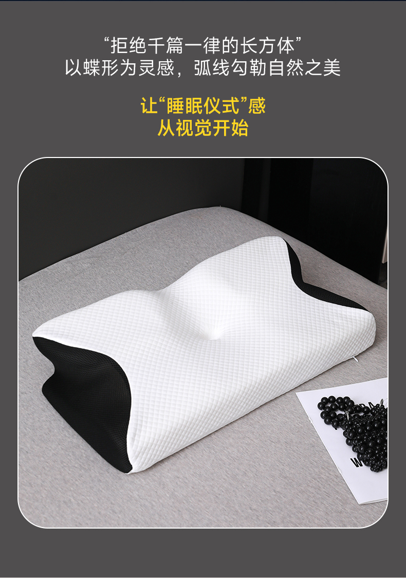 (总)圣靓家纺 2026新款跨境外贸飞机枕小牛角枕蝶形记忆枕记忆棉枕头枕芯颈椎枕蝴蝶护颈枕,飞机枕小牛角枕白色,飞机枕小牛角枕黑色,飞机枕小牛角枕灰色