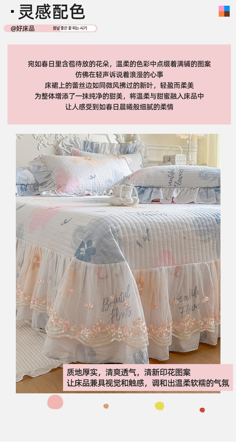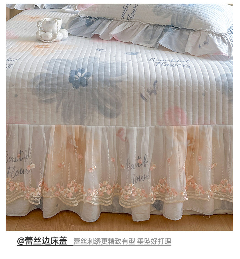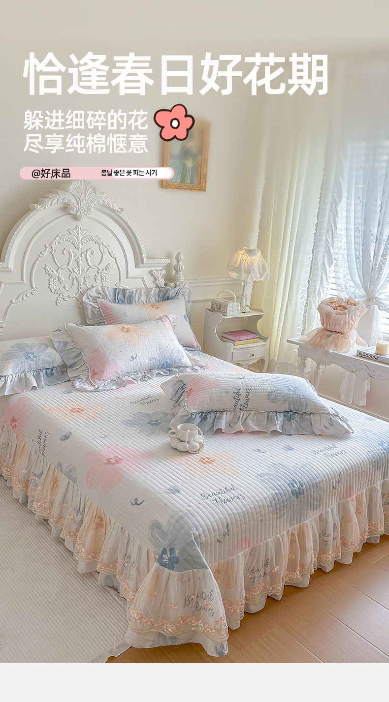 (总)网红馆(ck家纺) 2026春夏新款小清新全棉印花床裙四件套,花蔓蓝,蕾丝花海,翩翩花语,清风花影,甜心花朵,幸福花海