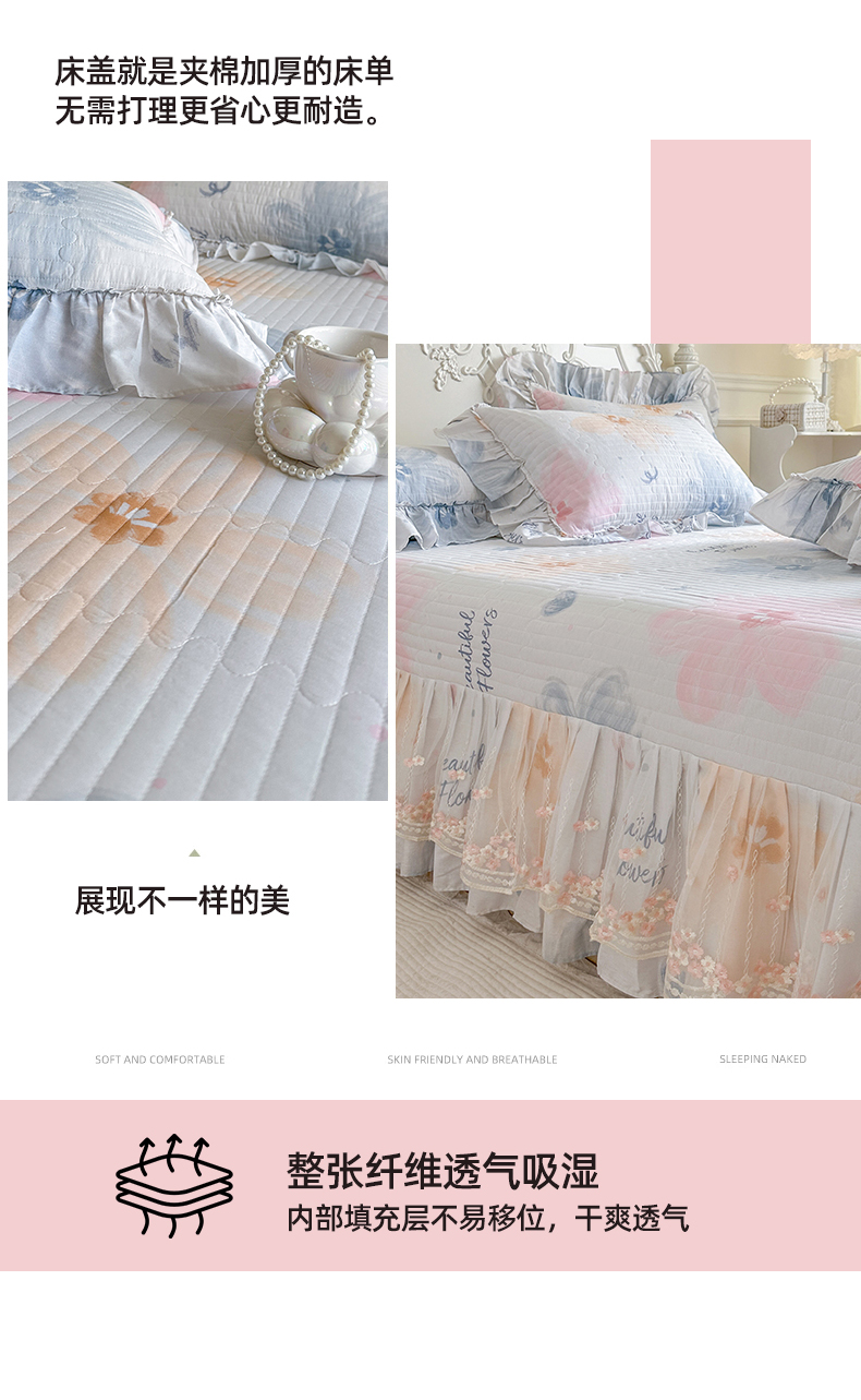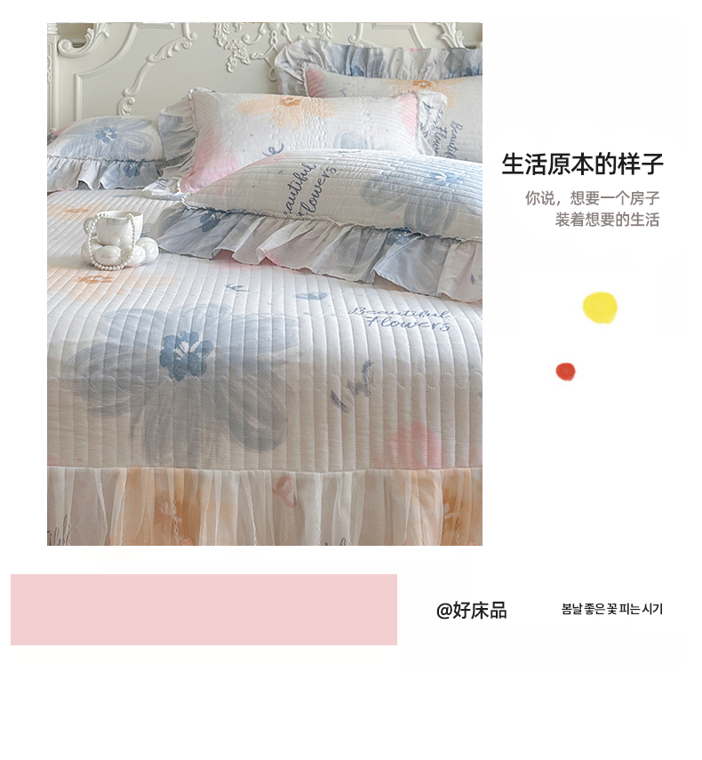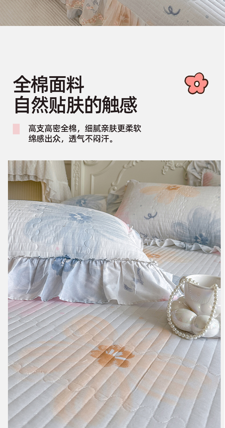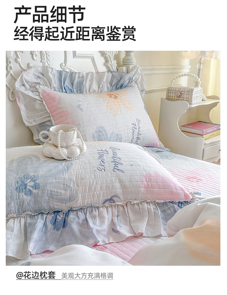 (总)网红馆(ck家纺) 2026春夏新款小清新全棉印花床裙四件套,花蔓蓝,蕾丝花海,翩翩花语,清风花影,甜心花朵,幸福花海
