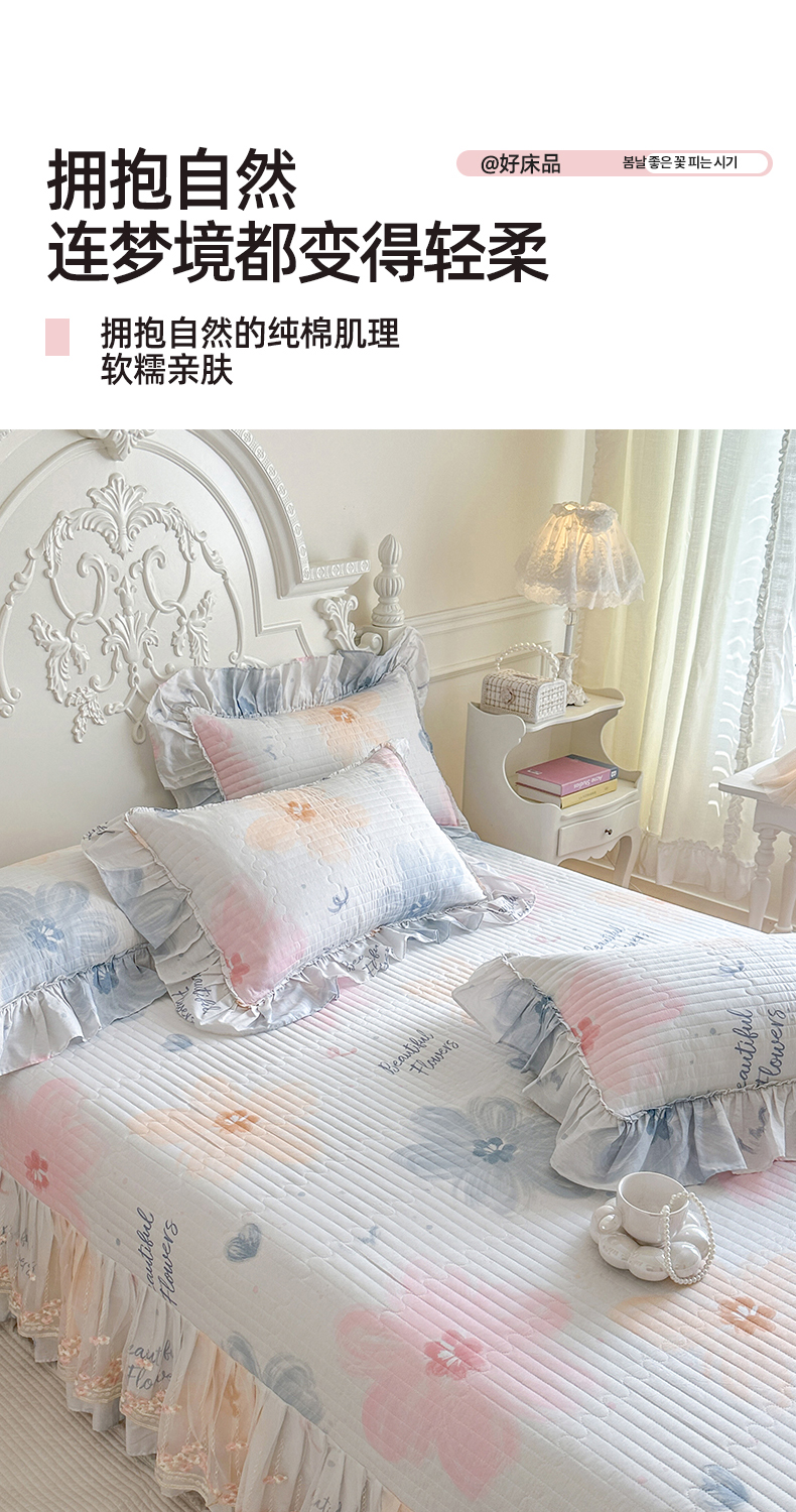 商品名称:网红馆(ck家纺) 2026春夏新款韩版全棉纯棉印花床盖三件套 慕夏