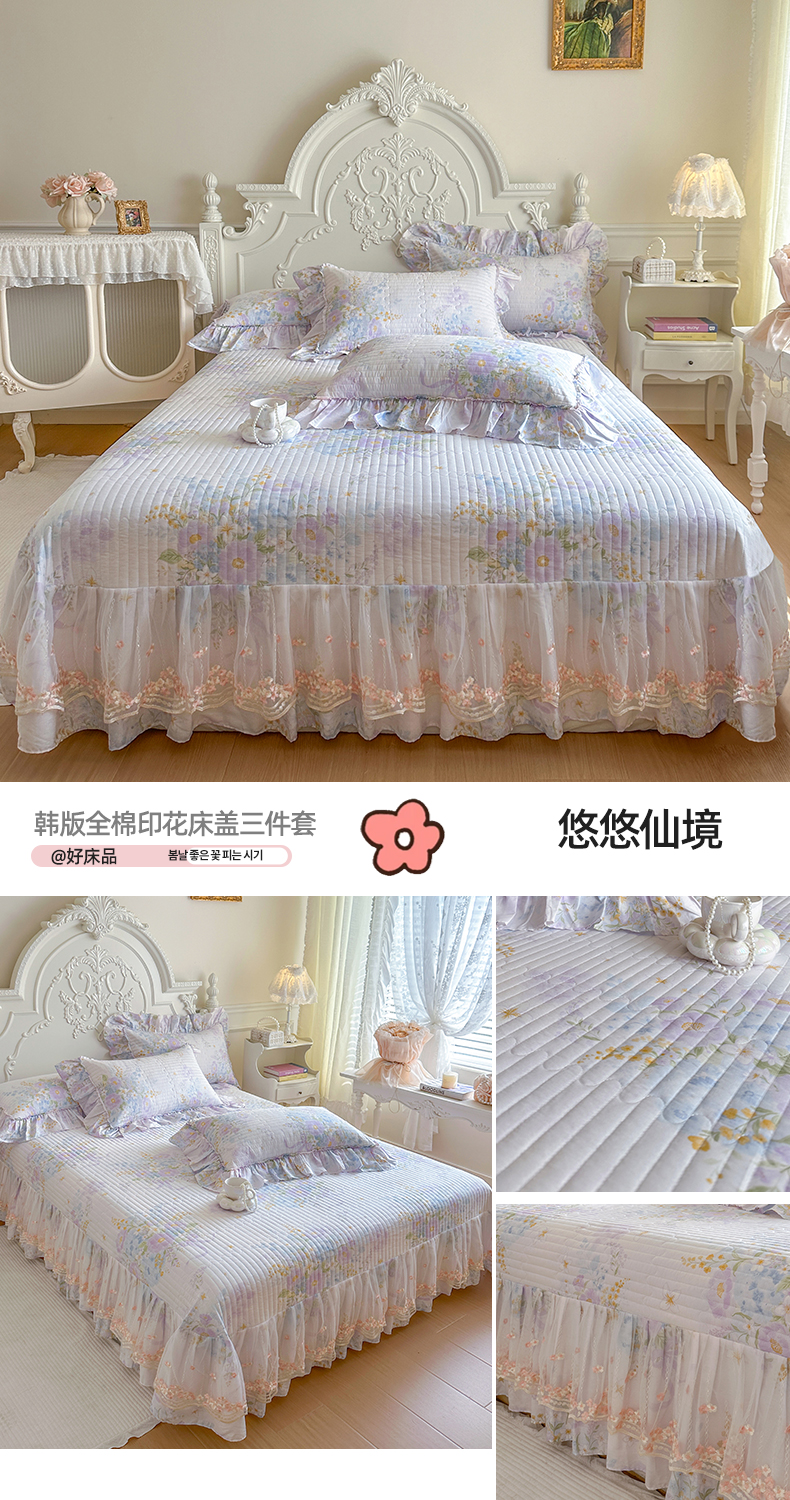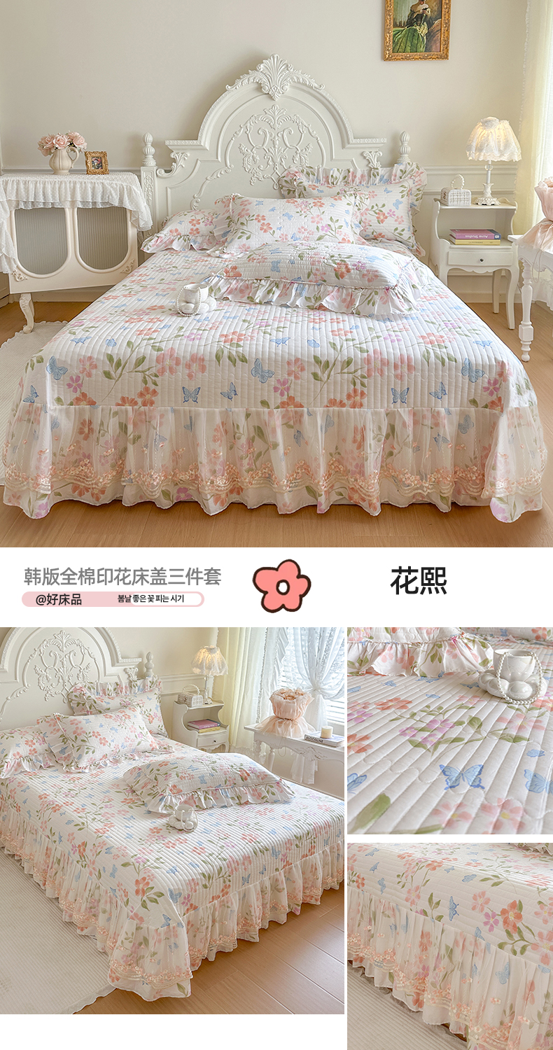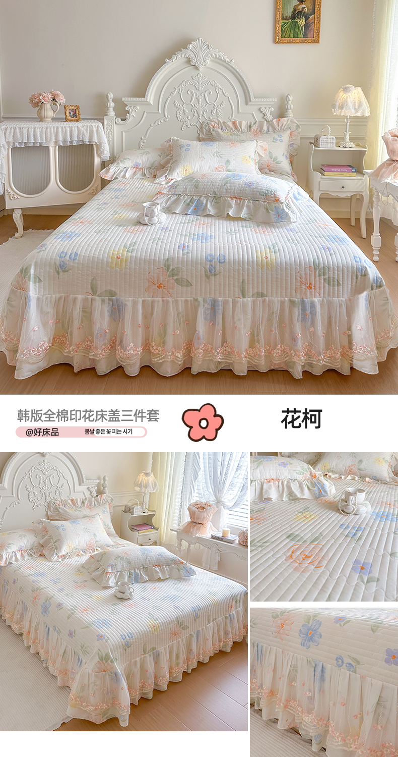 (总)网红馆(ck家纺) 2026春夏新款韩版全棉纯棉印花床盖三件套,花柯,花熙,茉屿,慕夏,轻婉花语,悠悠仙境