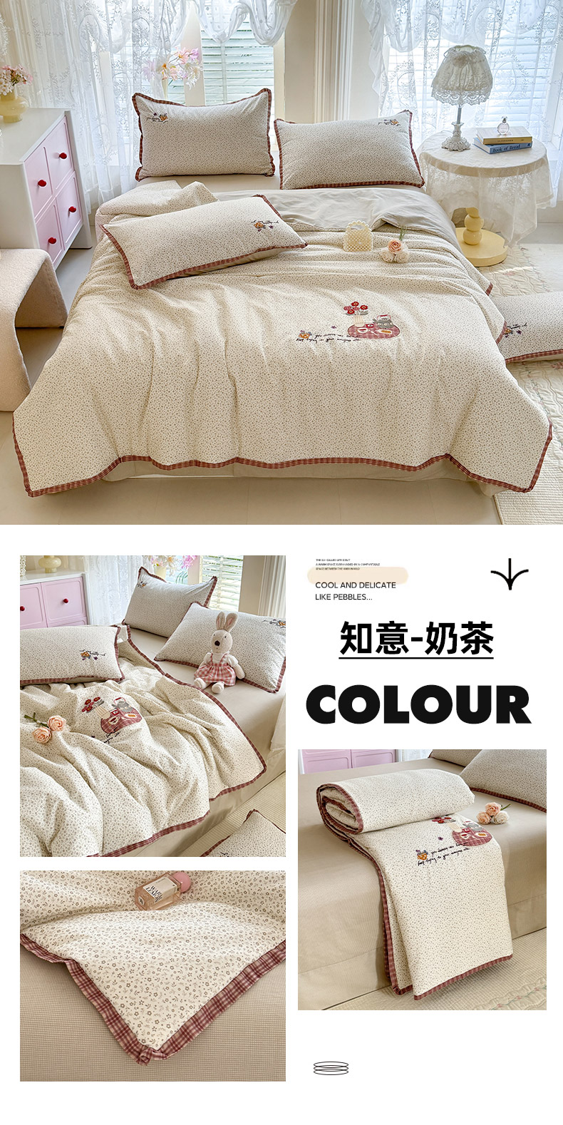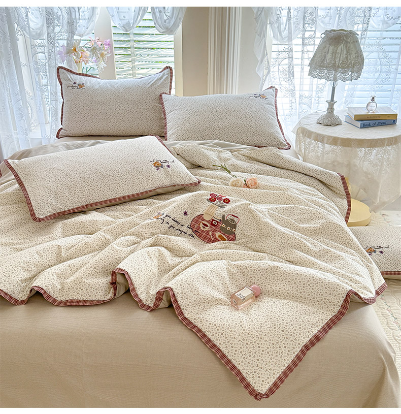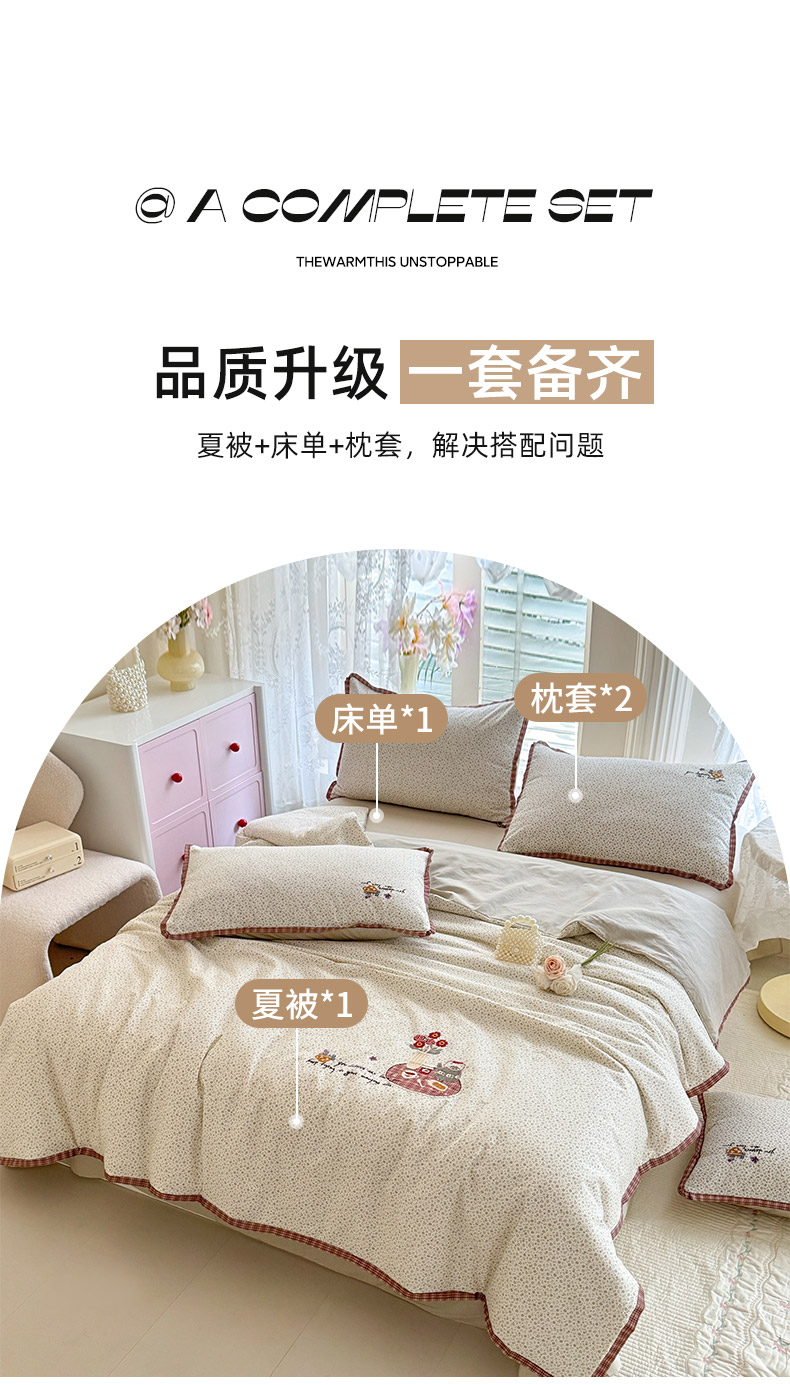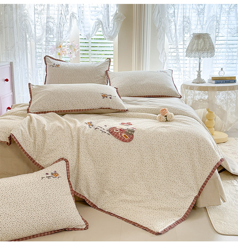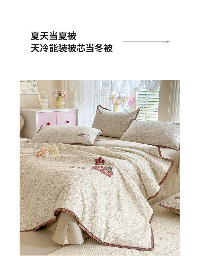 (总)艾唯希家纺 2026新款多功能全棉活套夏被四件套刺绣工艺纯棉四季通用-知意系列,知意-奶茶,知意-绿,知意-粉