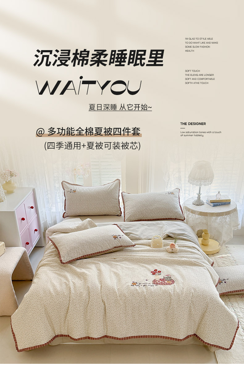 多功能活套夏被-四季两用。全棉刺绣工艺。