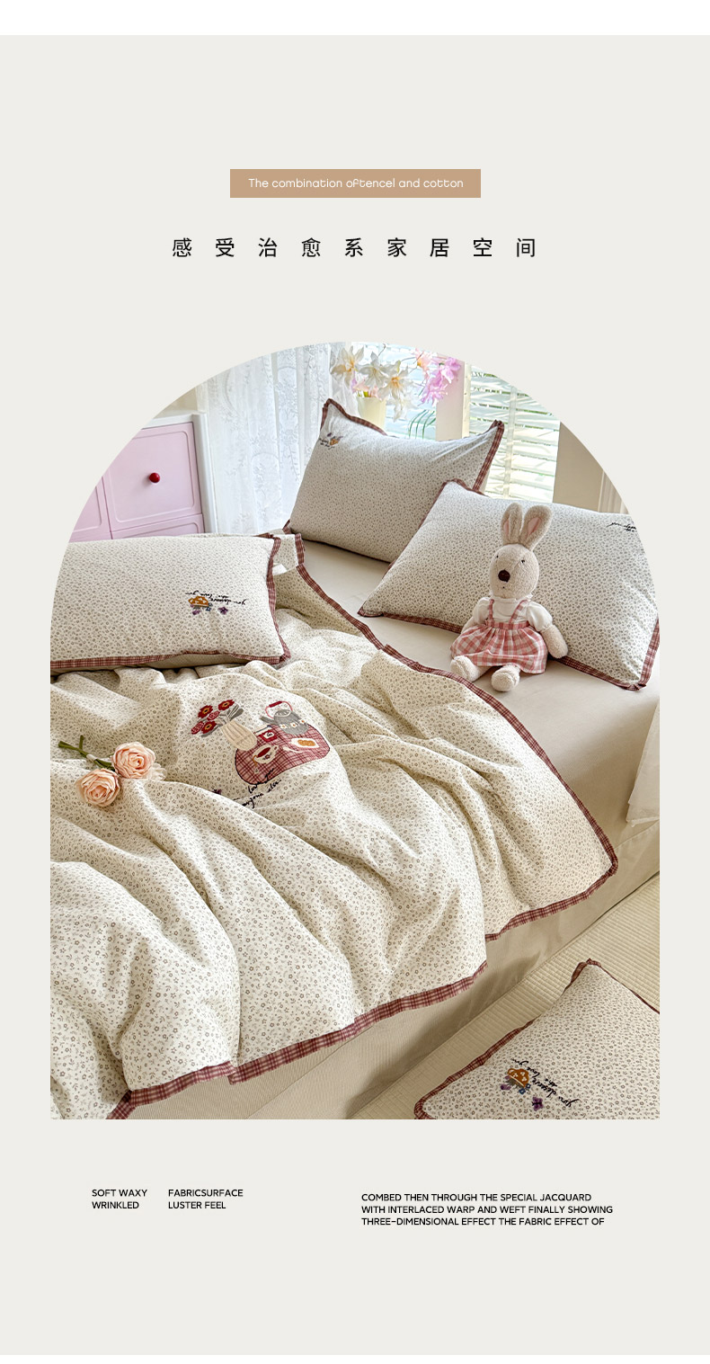 (总)艾唯希家纺 2026新款A类棉麻小碎花工艺四件套亚麻床盖床笠床单(控价)-可可兔系列,可可兔-千幻梦,可可兔-乡野,可可兔-黑线花,可可兔-豆沙花,可可兔-兔兔点