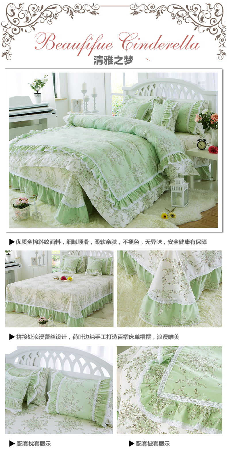(总)菊上家纺 2023秋冬新品法式花边全棉床盖四件套,安妮紫,花千骨,小欢喜,布拉格,罗蔓莉,玛雅灰,小幸运,卡町绿,恋花影,薇薇安
