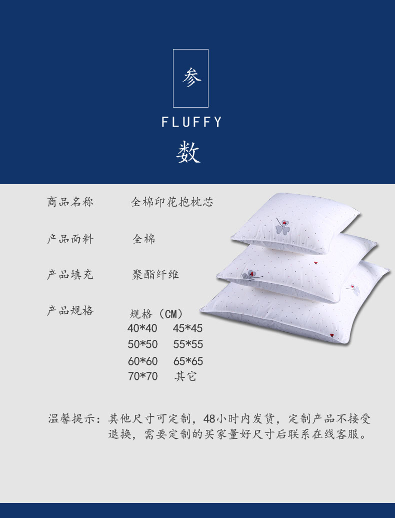 商品名称:沃兰国际 全棉印花靠垫抱枕方垫芯羽丝绒枕芯方枕头(多规格)