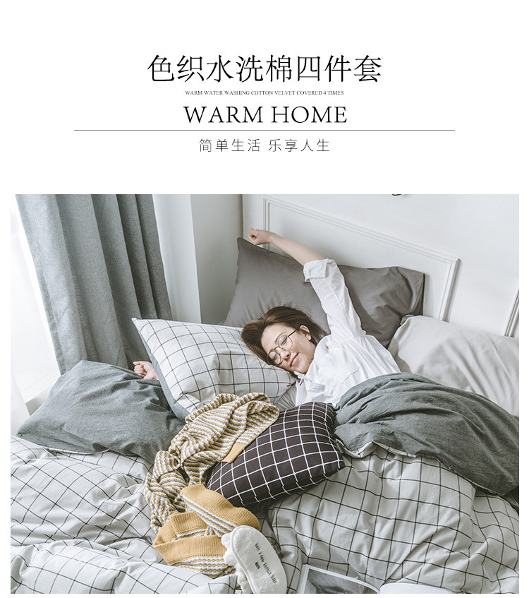 商品名称:早春全棉色织水洗套件电子图浅灰格子