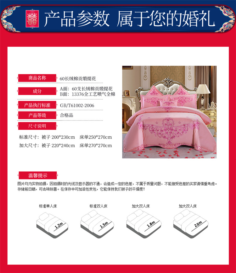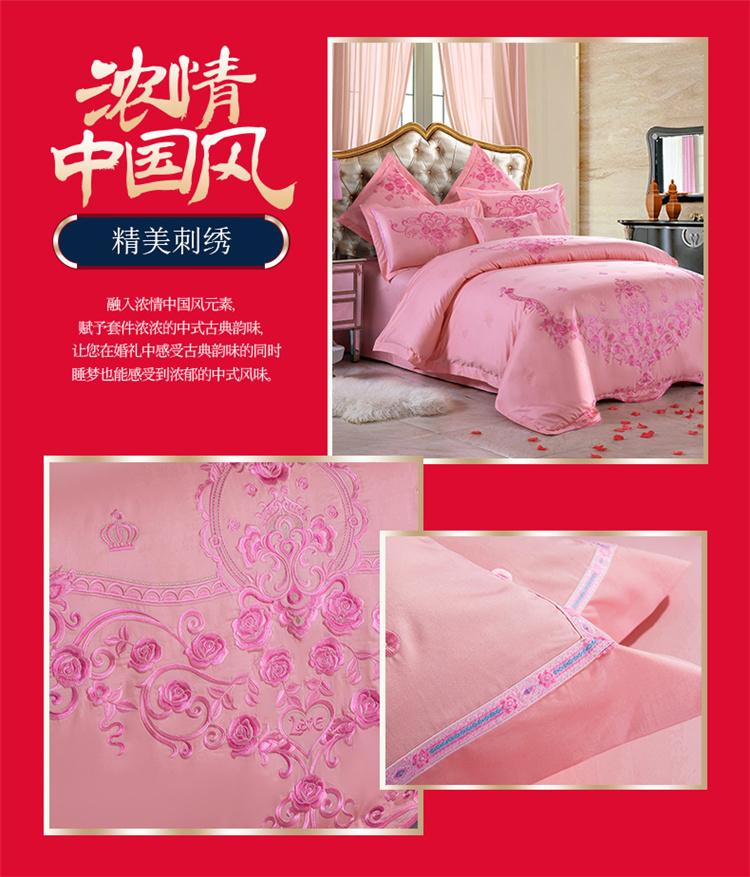 商品名称:千禧婚庆专供 长绒棉贡缎提花绣花婚庆套件 钟爱一生