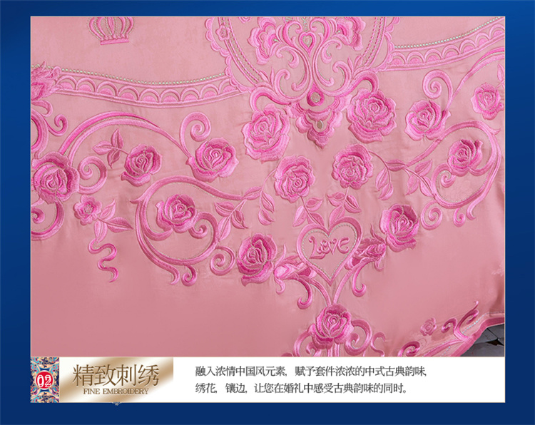 (总)千禧家纺 2025新款双面长绒棉轻奢工艺款刺绣婚庆套件(贵妃枕非图上所展示款),巴黎恋人,花海,佳期如梦,倾城之恋,甜心公主,禧爱,百年好合,相濡以沫,心有灵犀