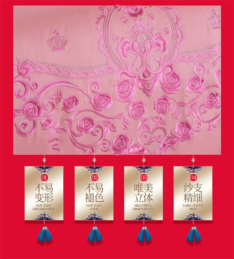千禧 2024新款贡缎磨毛婚庆绣花多件套 盛世华庭(彩色绣),盛世华庭(彩色绣)