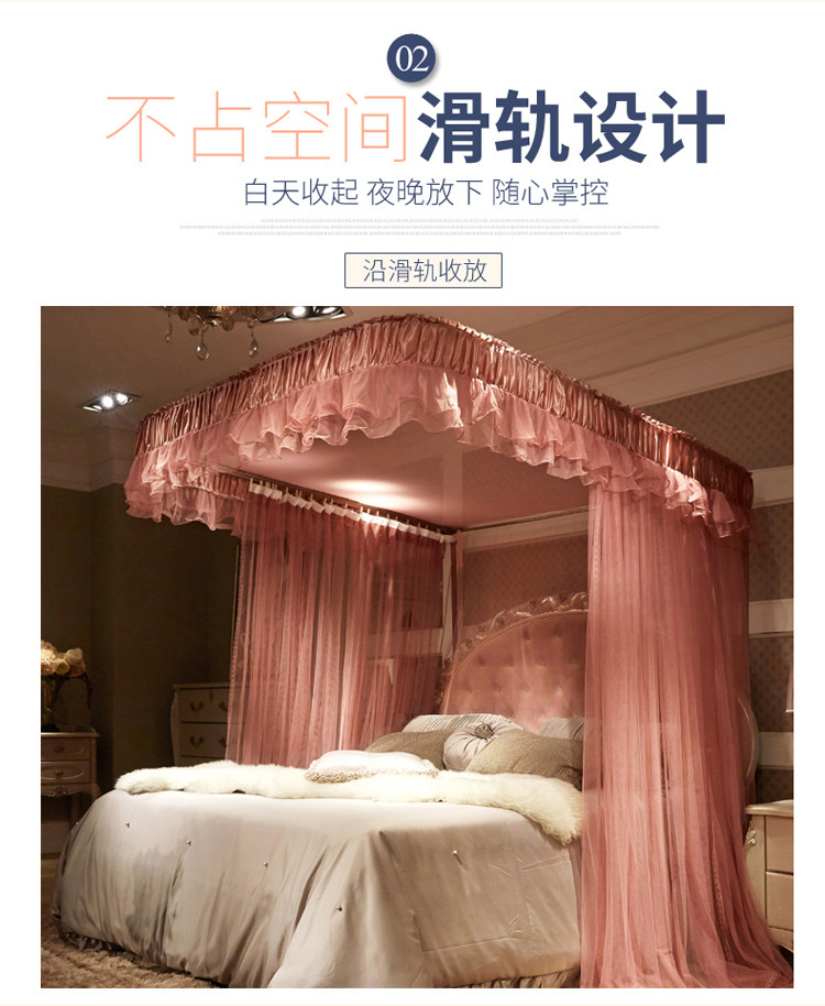 (总)海虹蚊帐2025新款U型双导轨强遮光非涂层静电植绒环保透气床帘款学生蚊帐,典雅米U型导轨,时尚灰U型导轨,月光蓝U型导轨