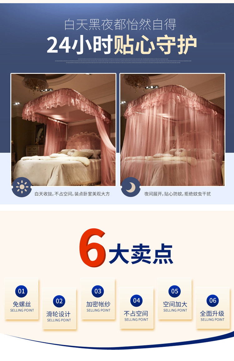 (总)海虹蚊帐 2025新款2503款一体防尘顶落地宫廷蚊帐,白色,米黄,浅蓝,玉色