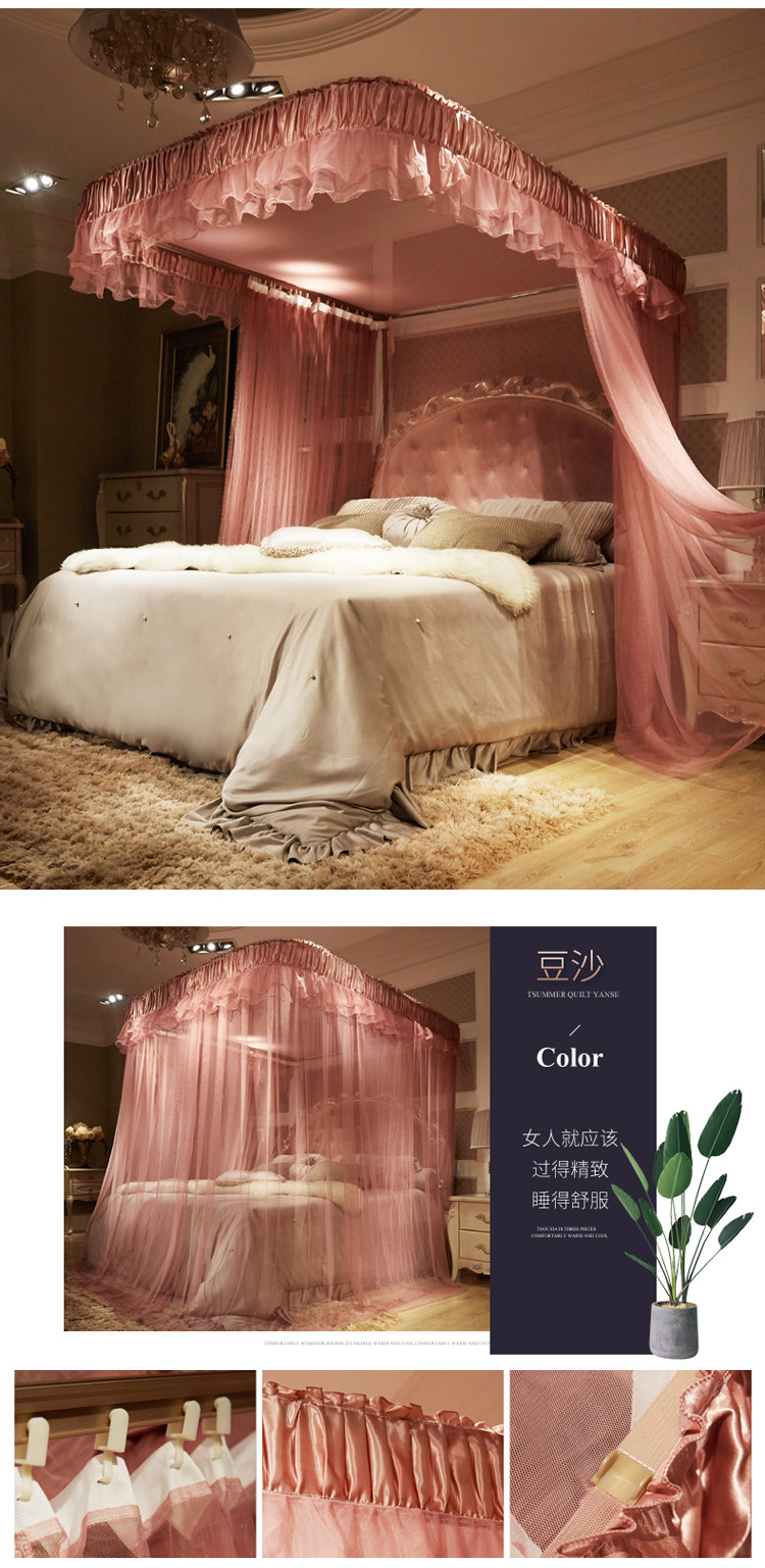 (总)海虹蚊帐 2025新款加高内穿U型三门2402保暖款夹棉防尘顶坐床蚊帐,米色,浅粉,浅米咖