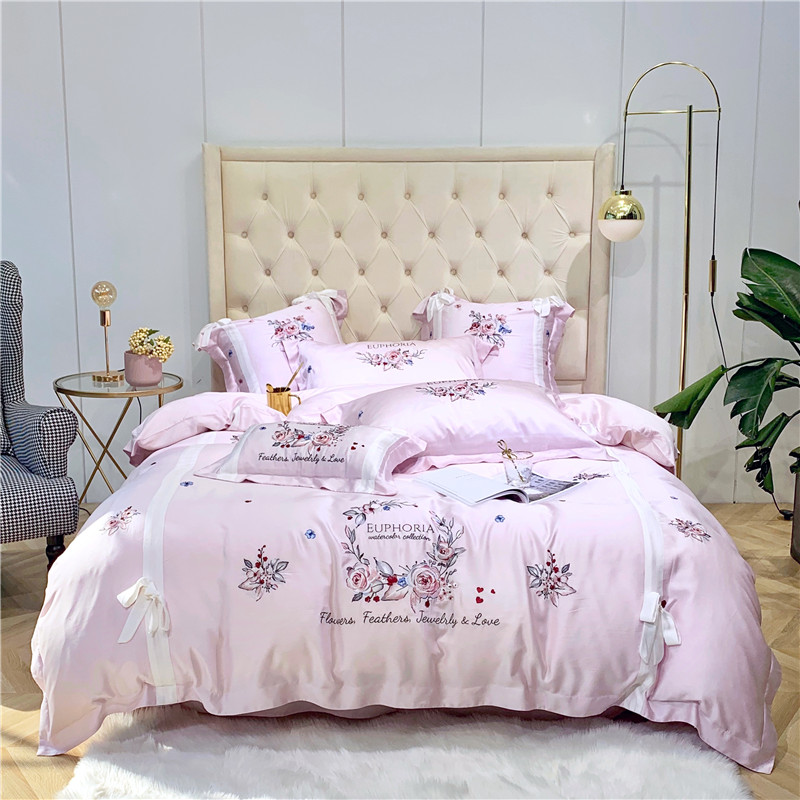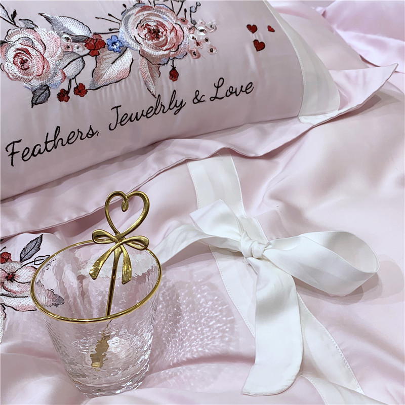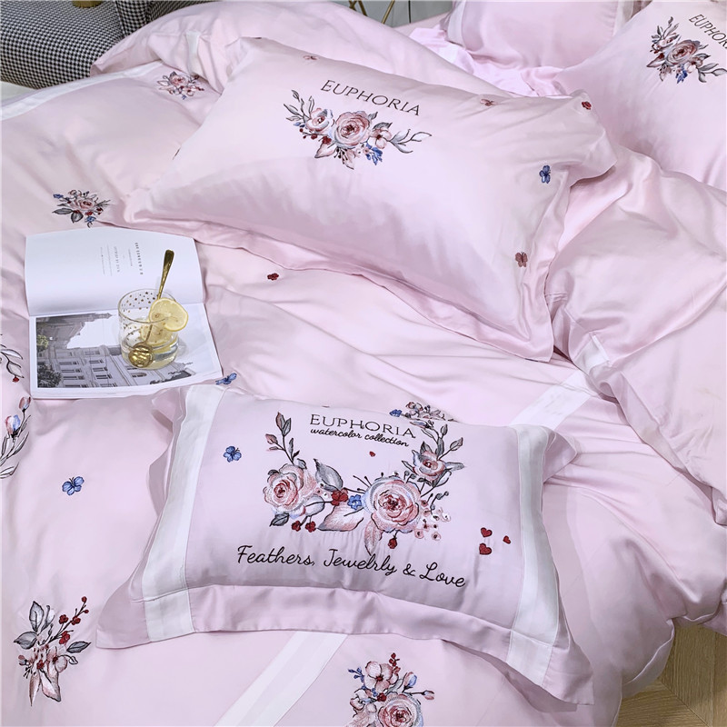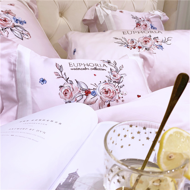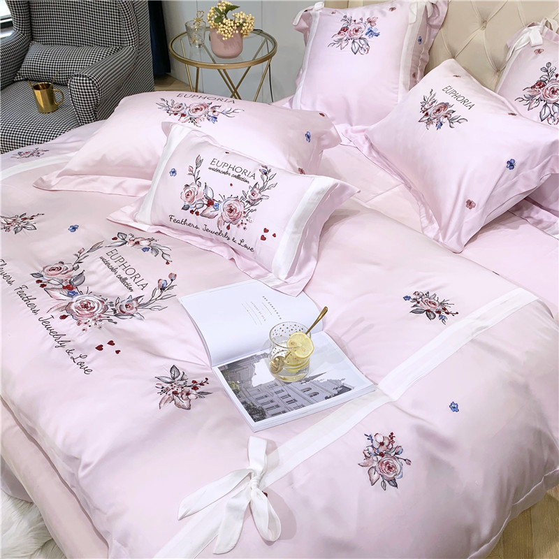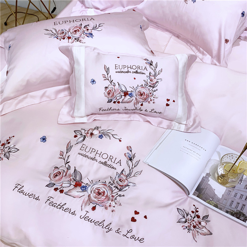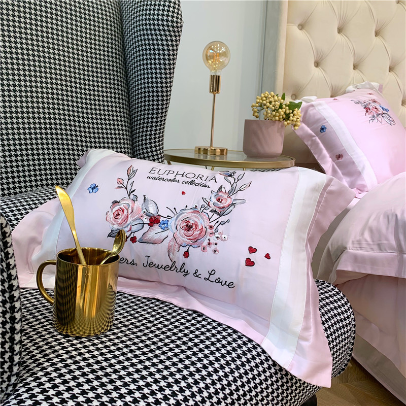当前位置: 91家纺网 > 商品网购 > 床品套件 > 四件套 > 长绒棉四件套 > 馨蕊家居 2021新款60长绒棉绣花四件套 艾琳-粉