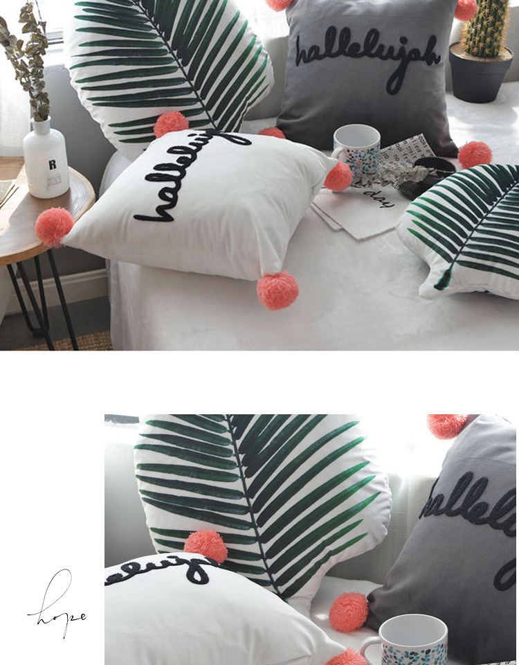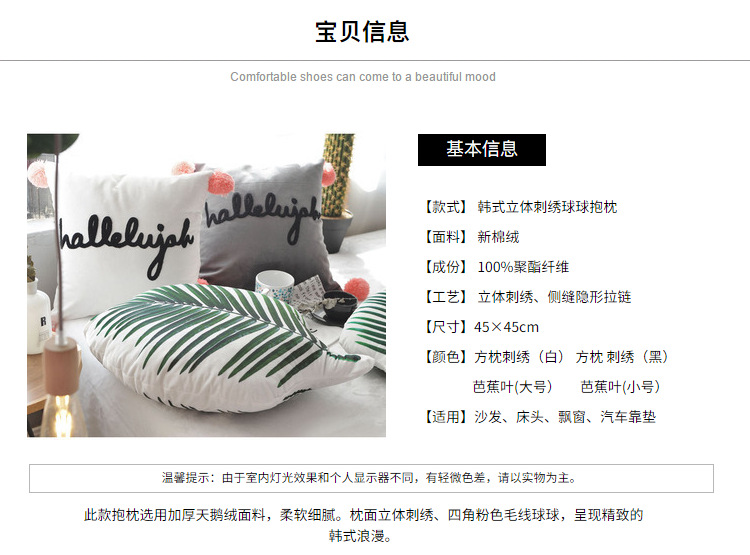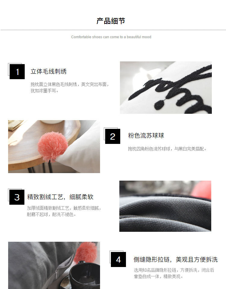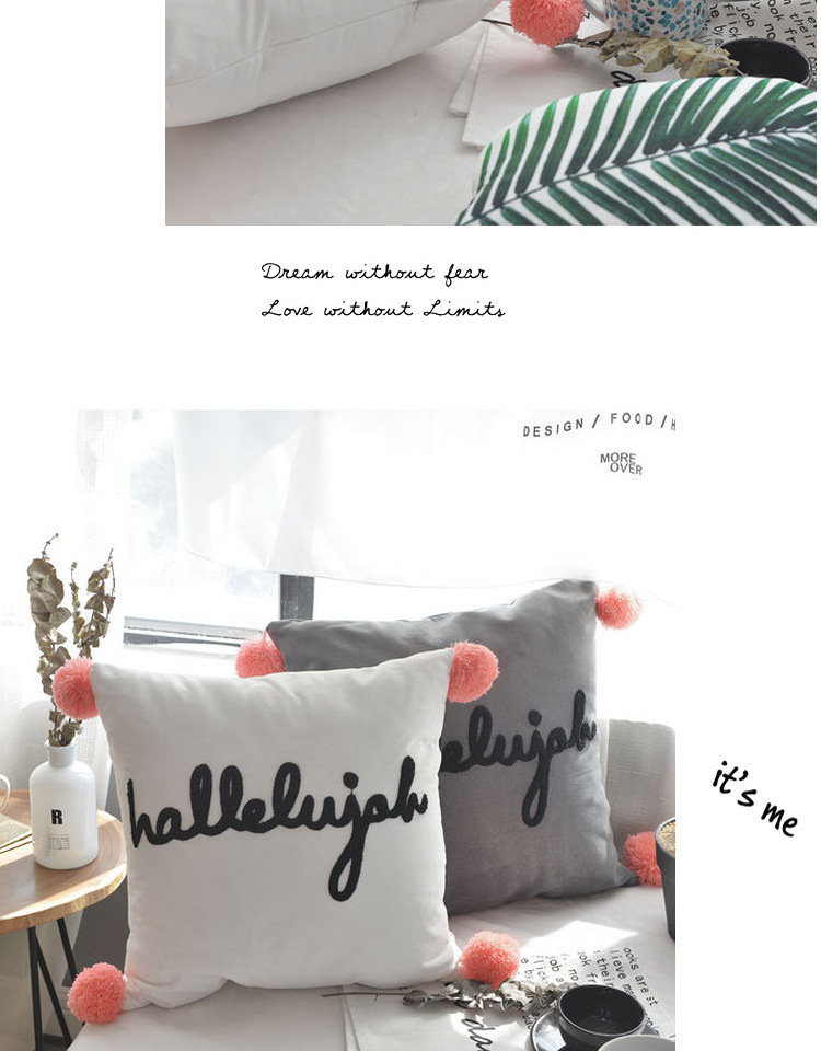 商品名称:美茉家居 纯棉立体刺绣字母抱枕流苏球球靠垫