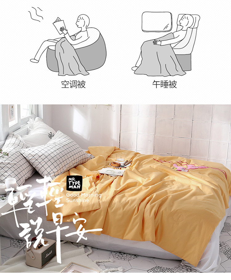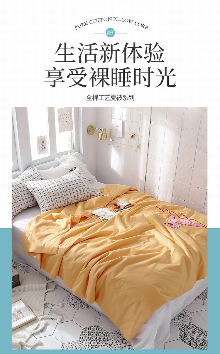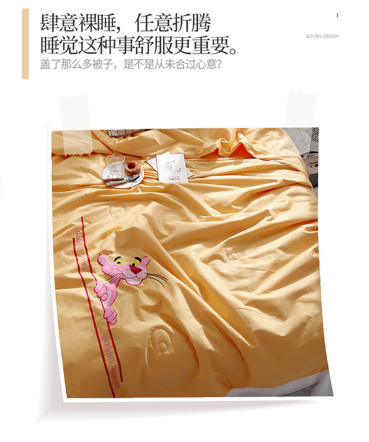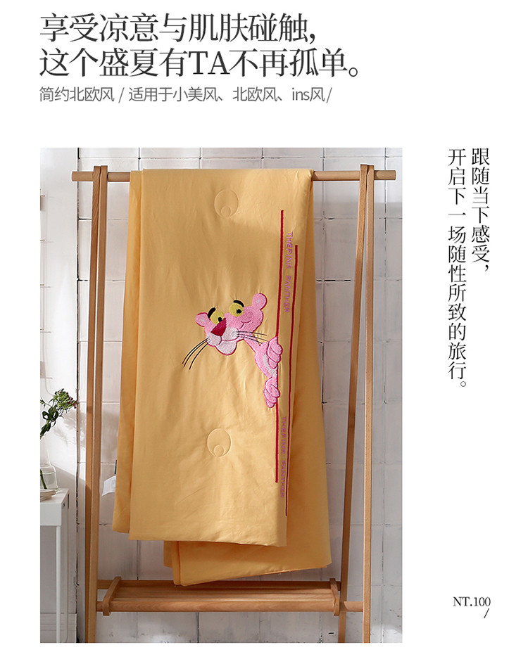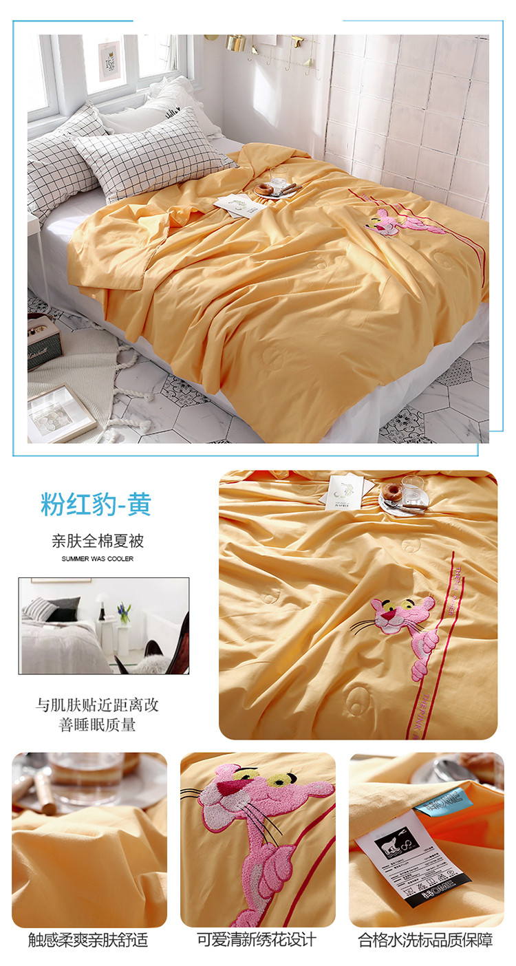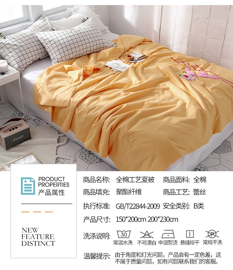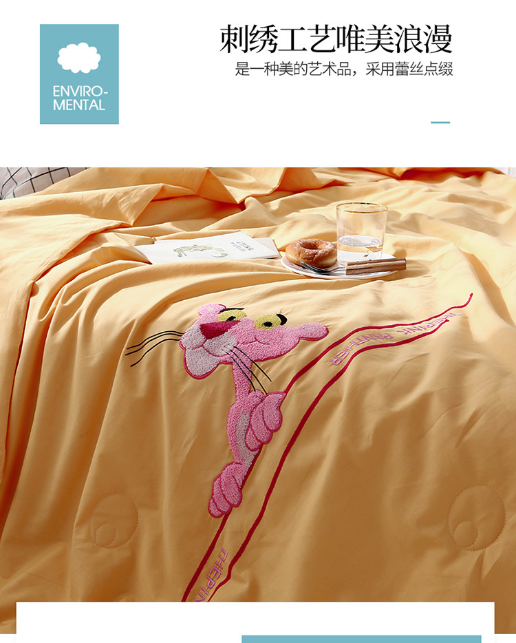 商品名称:头等舱 2019全棉13376工艺夏被 粉红豹黄