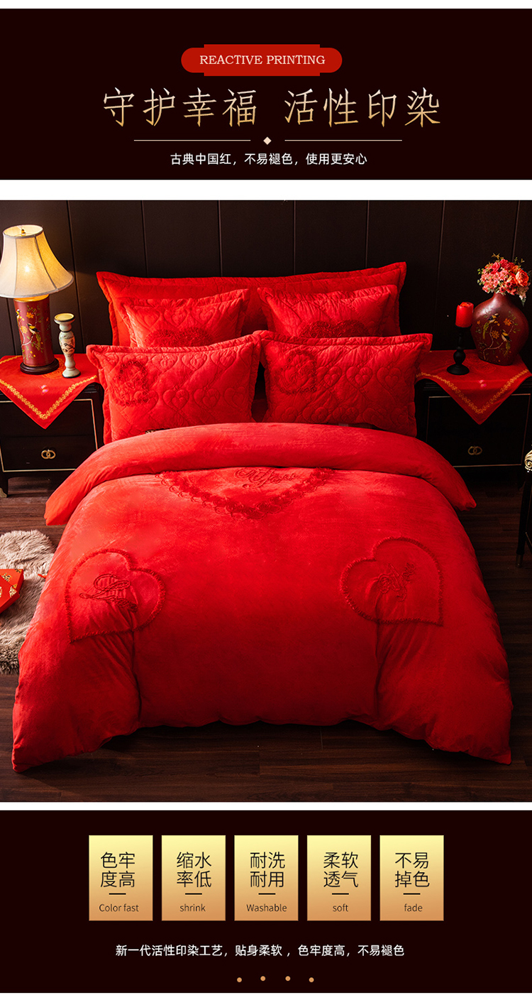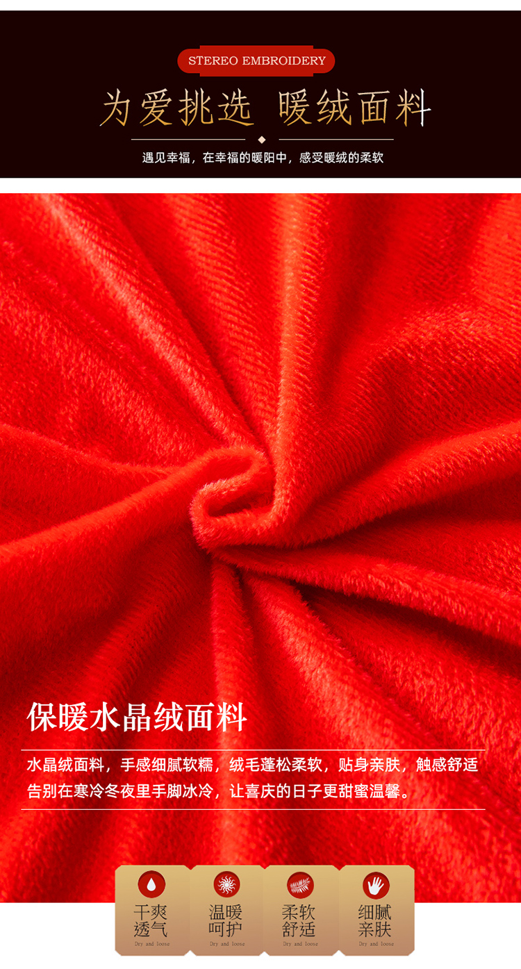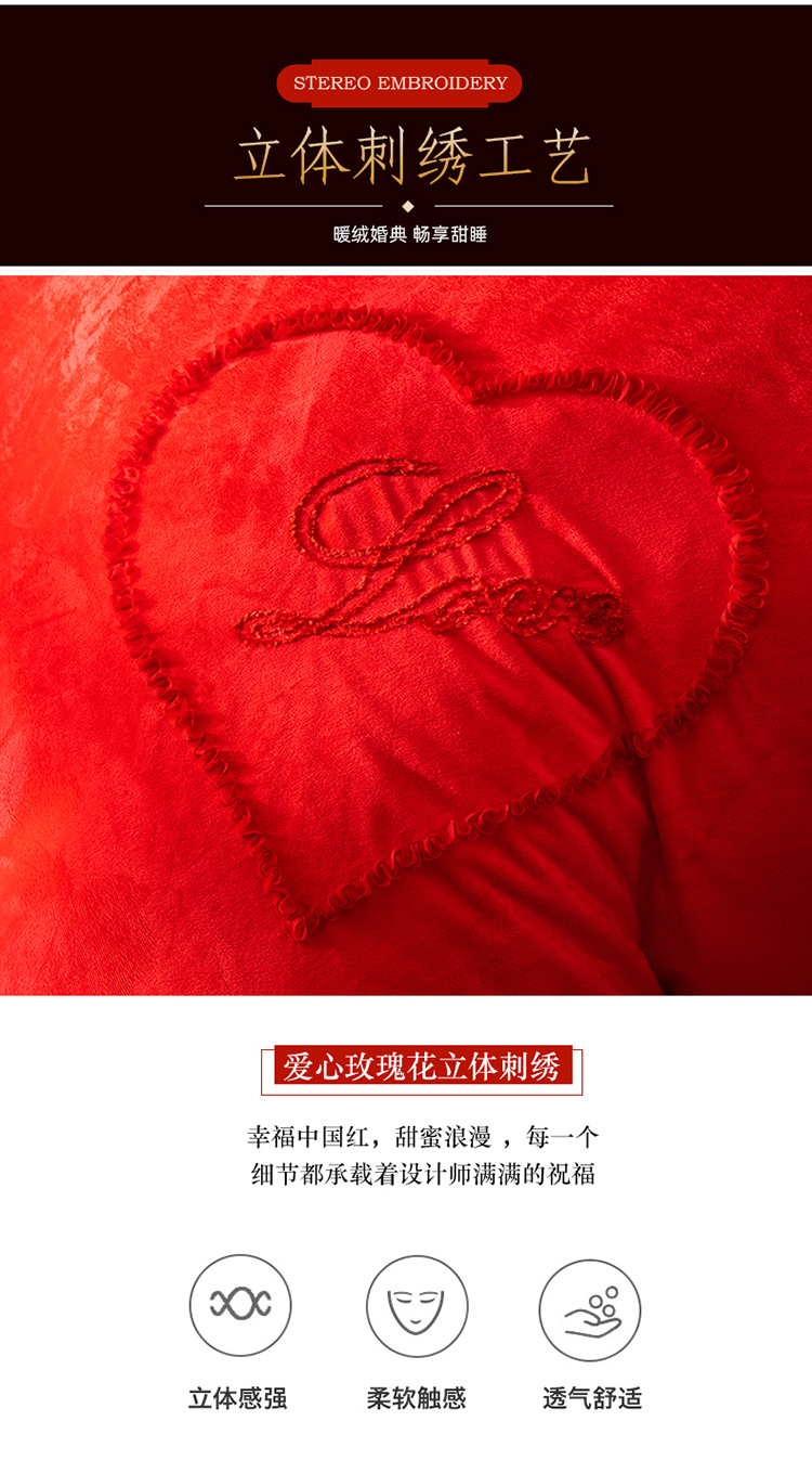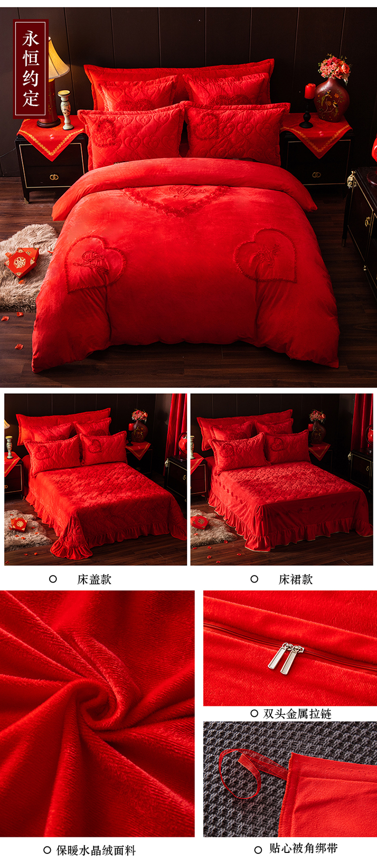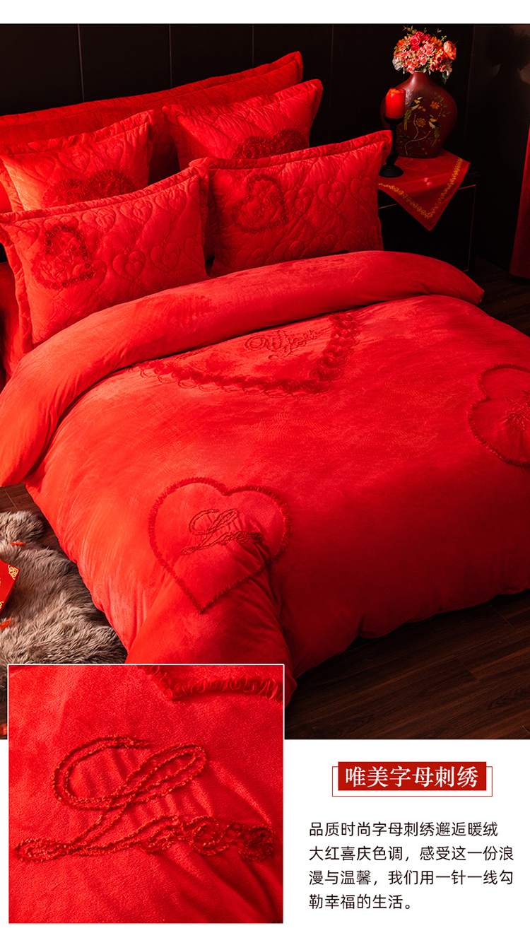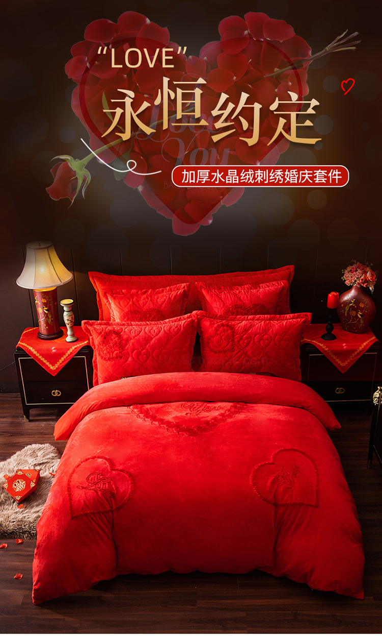 当前位置: 91家纺网 > 商品网购 > 床品套件 > 四件套 > 婚庆四件套 > 宜凡家纺 2019加厚水晶绒婚庆刺绣套件 永恒约定