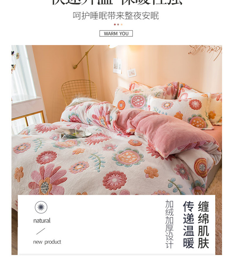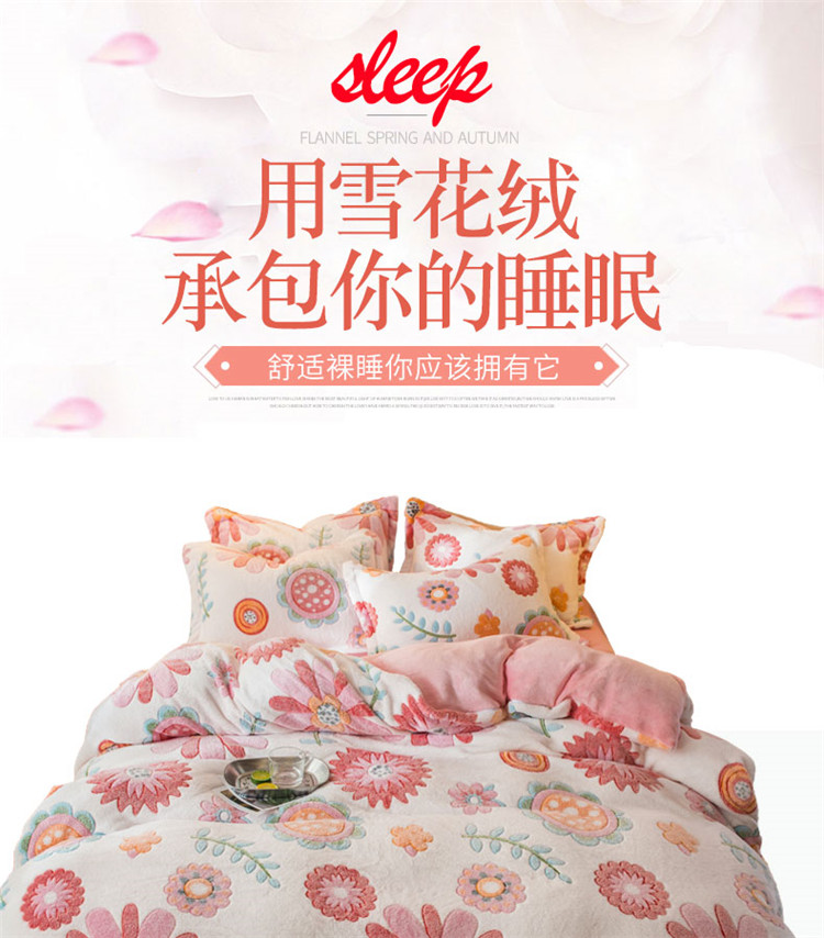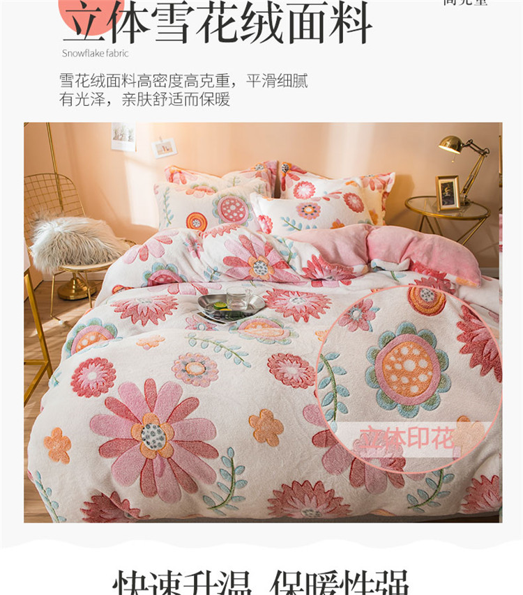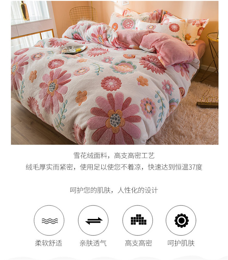 商品名称:川悦生活 2019新款立体雪花绒四件套 彩虹花