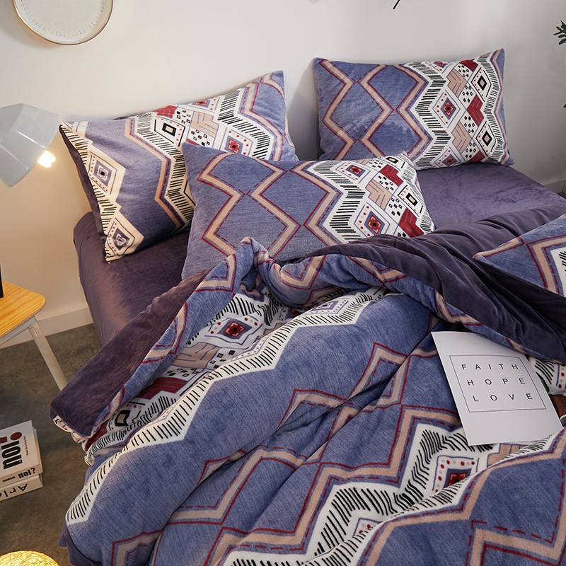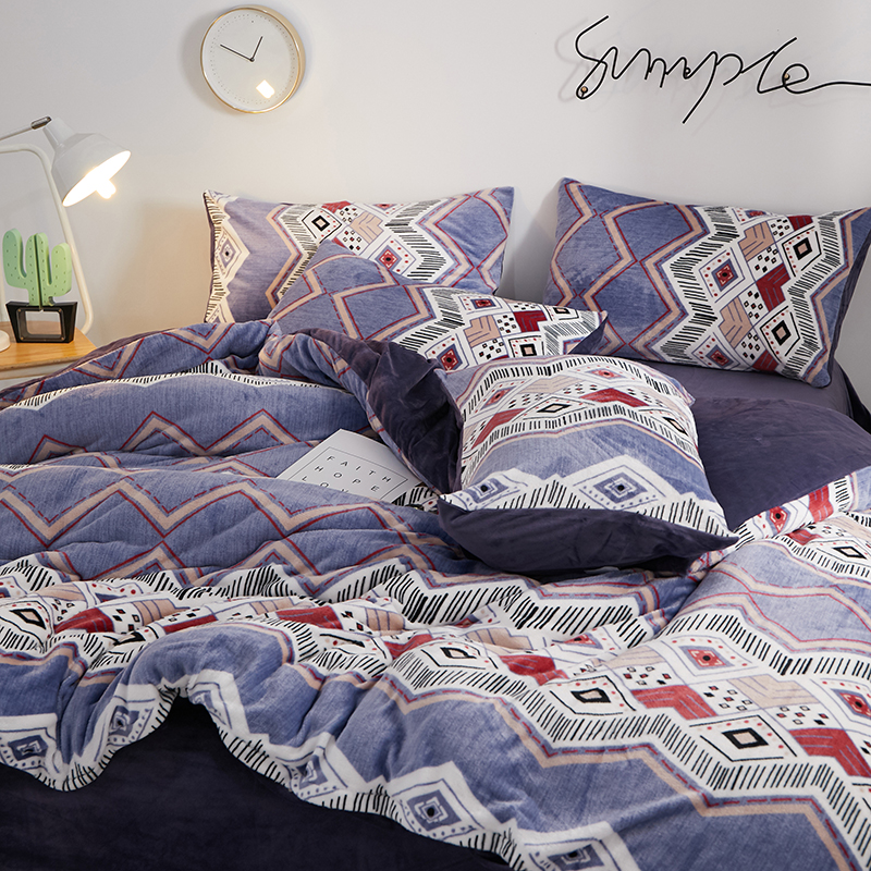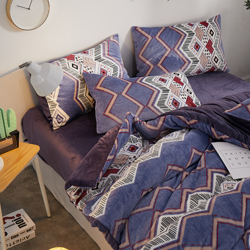 一米阳光 2019新款法莱绒四件套 波西米亚