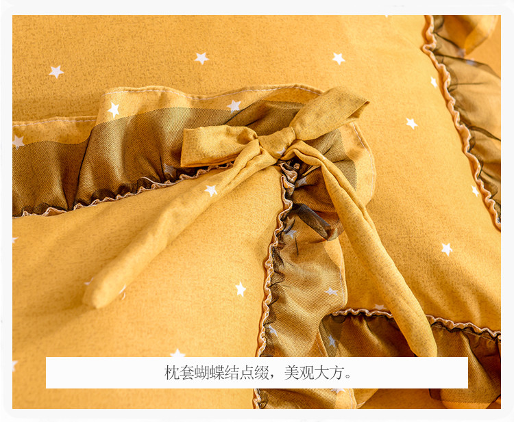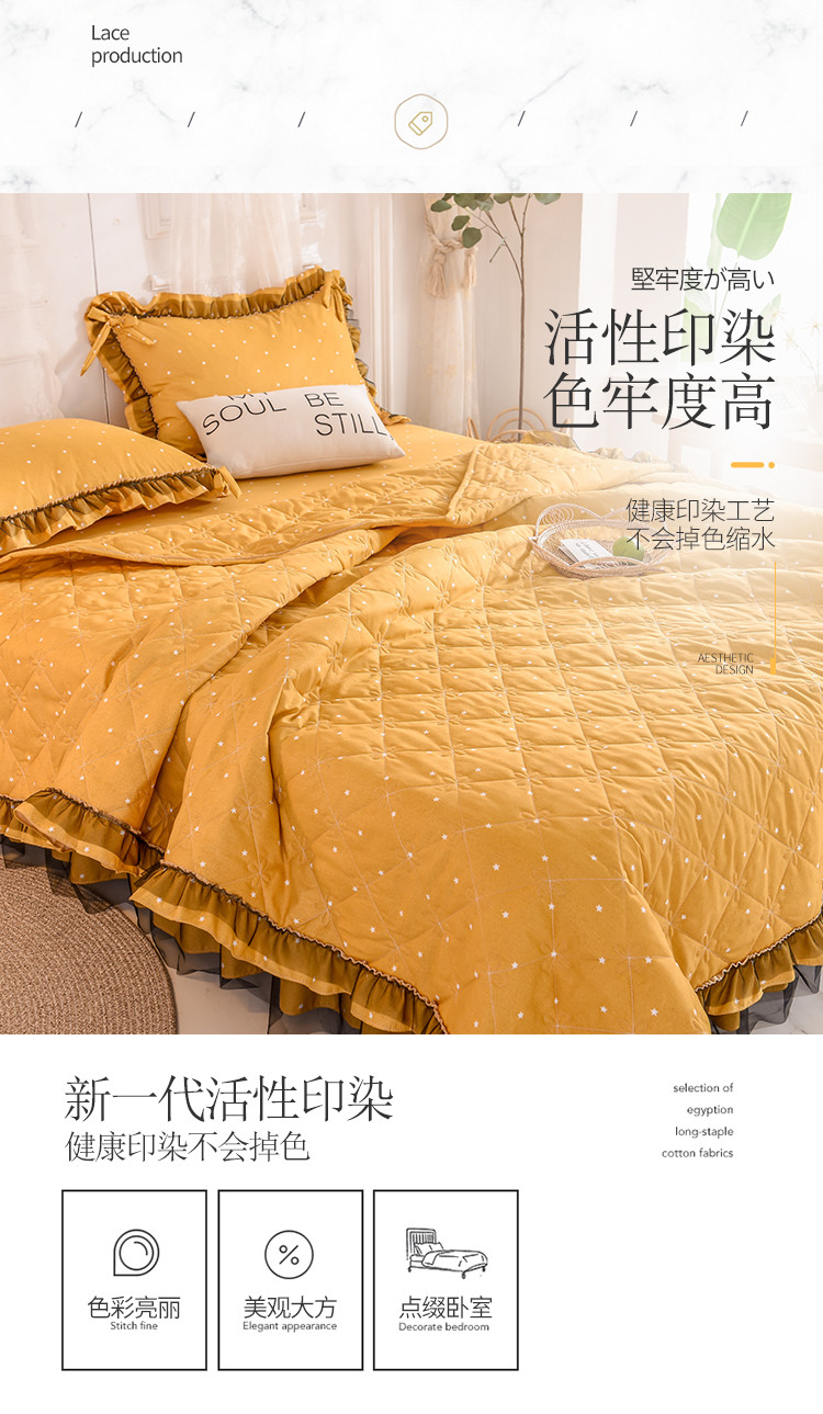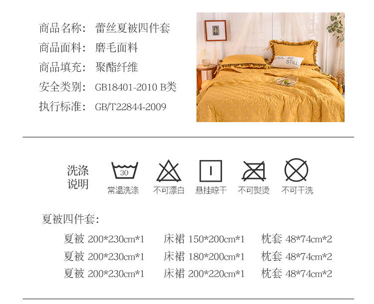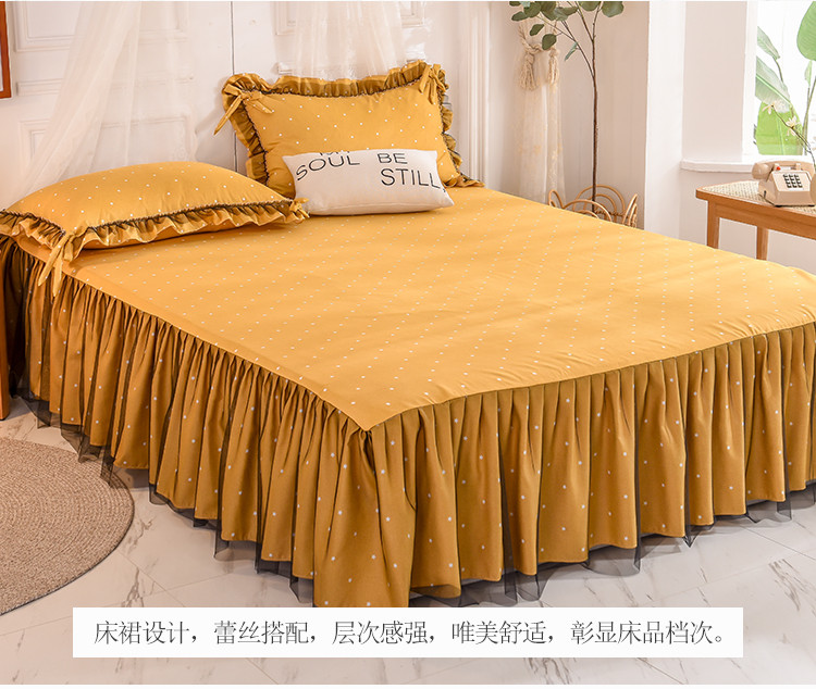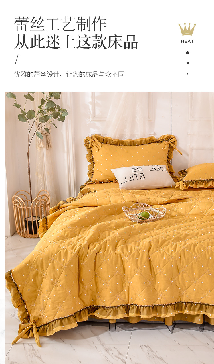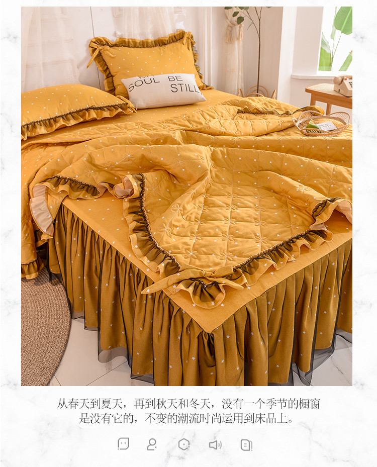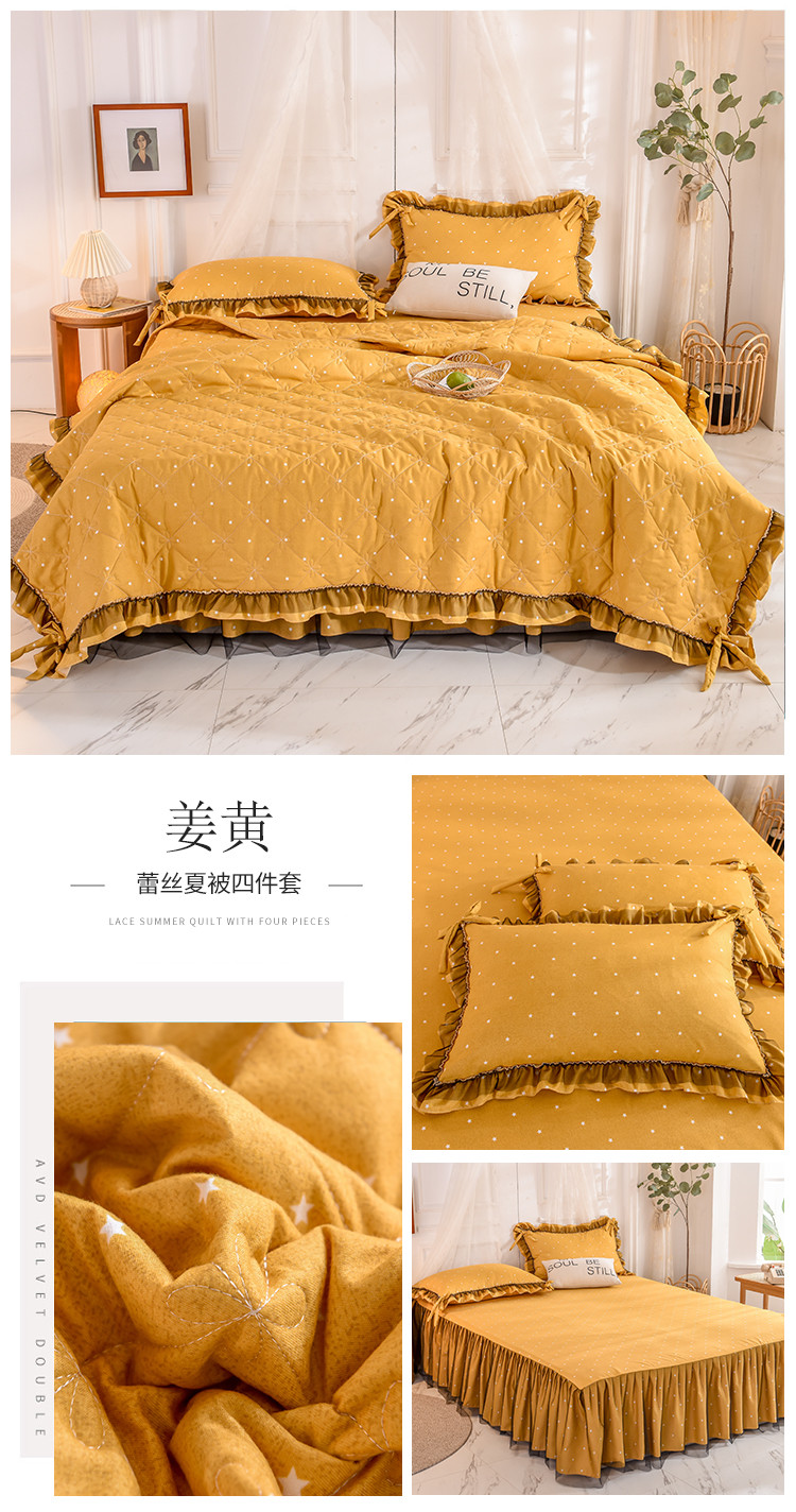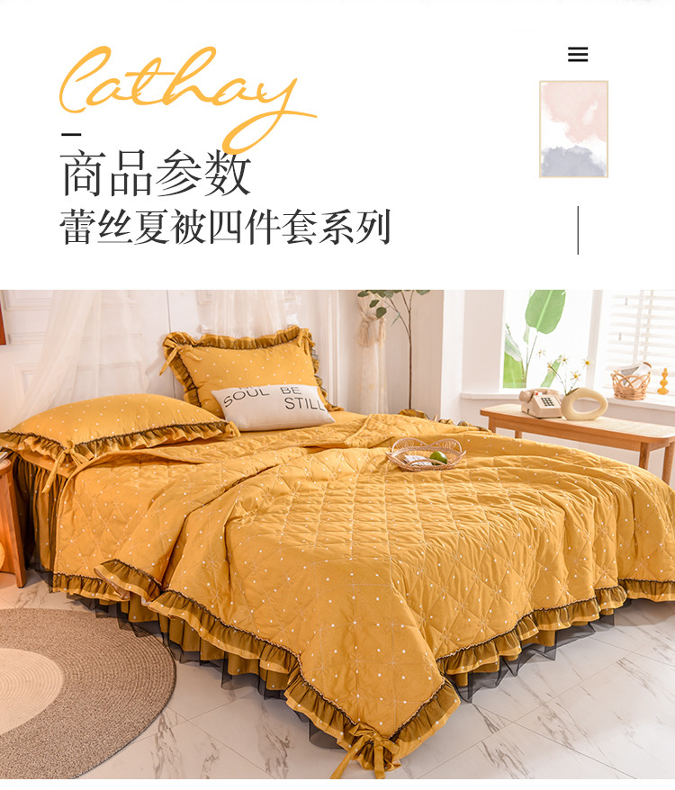 商品名称:芭比蔓家纺 2024新款床裙款夏被四件套 姜黄