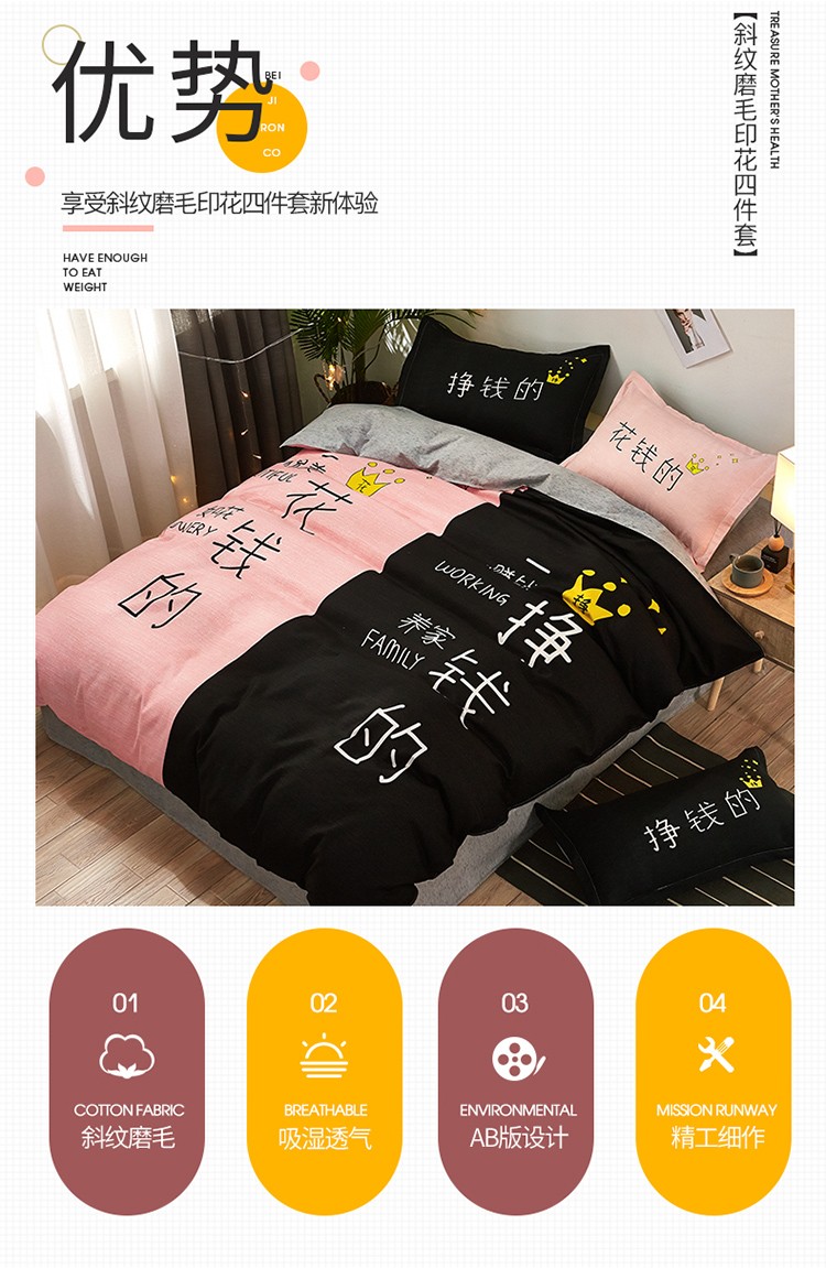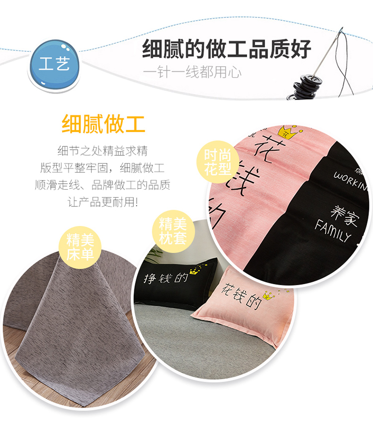 大号(适合1.8m床)被套200/230,床笠180/200,枕套48/74*2 | ¥68.00 |