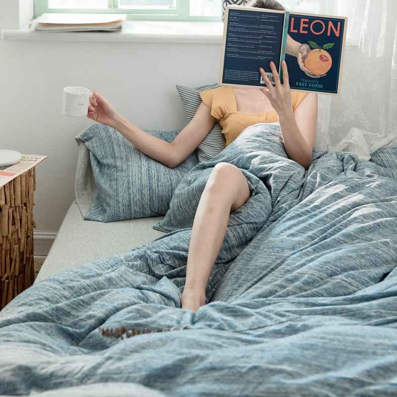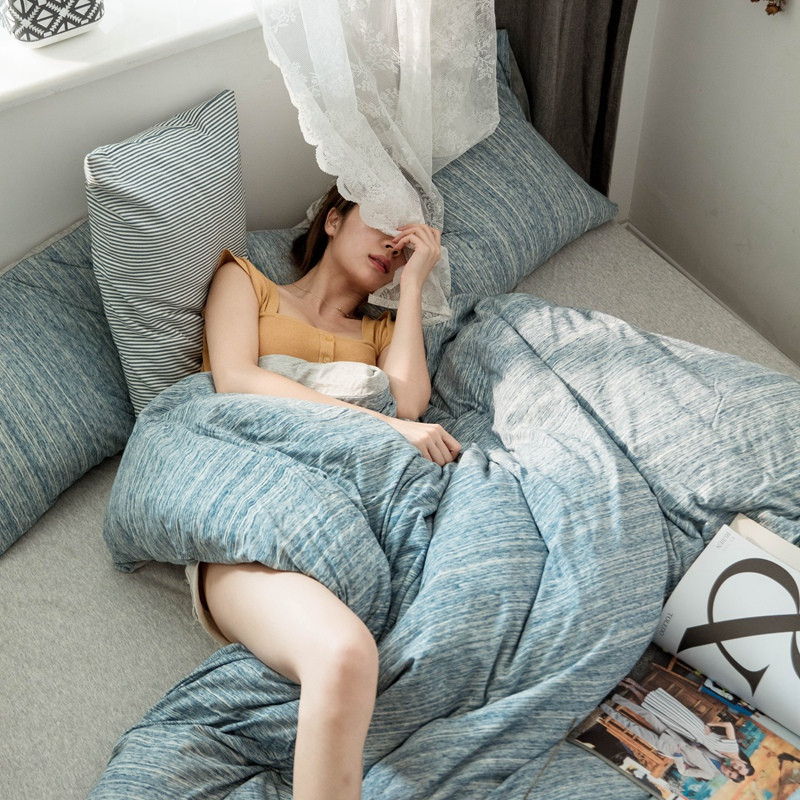 当前位置: 91家纺网 > 商品网购 > 床品套件 > 四件套 > 针织棉四件套 > 华超针织 2021新款针织段彩双拼四件套 段彩雾蓝