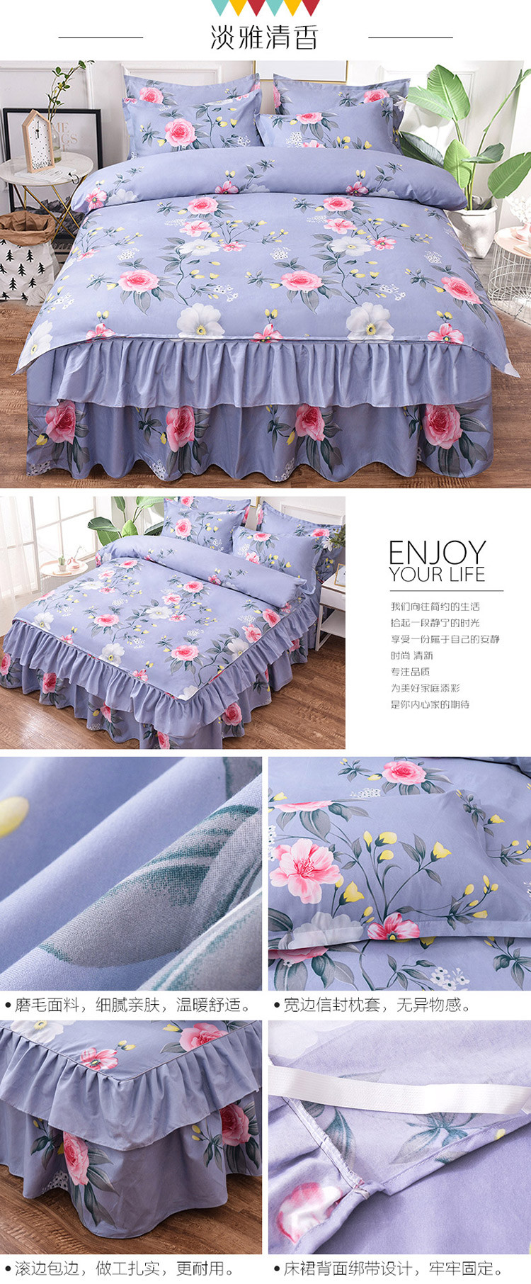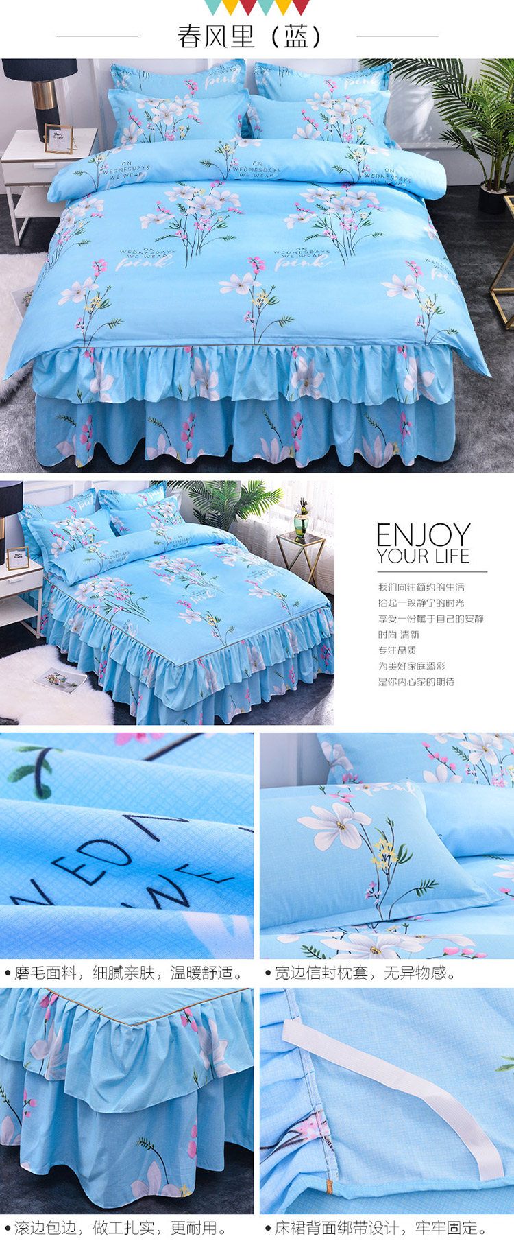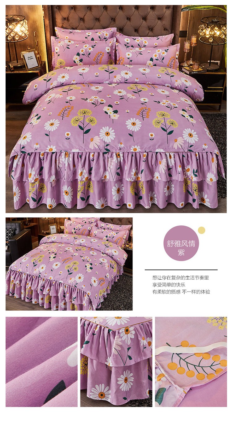 (总)梦柏家纺 2025新款韩式牛奶绒刺绣花边床盖四件套,风信紫,湖水蓝,浅草绿,蔷薇粉,樱花粉,月光白