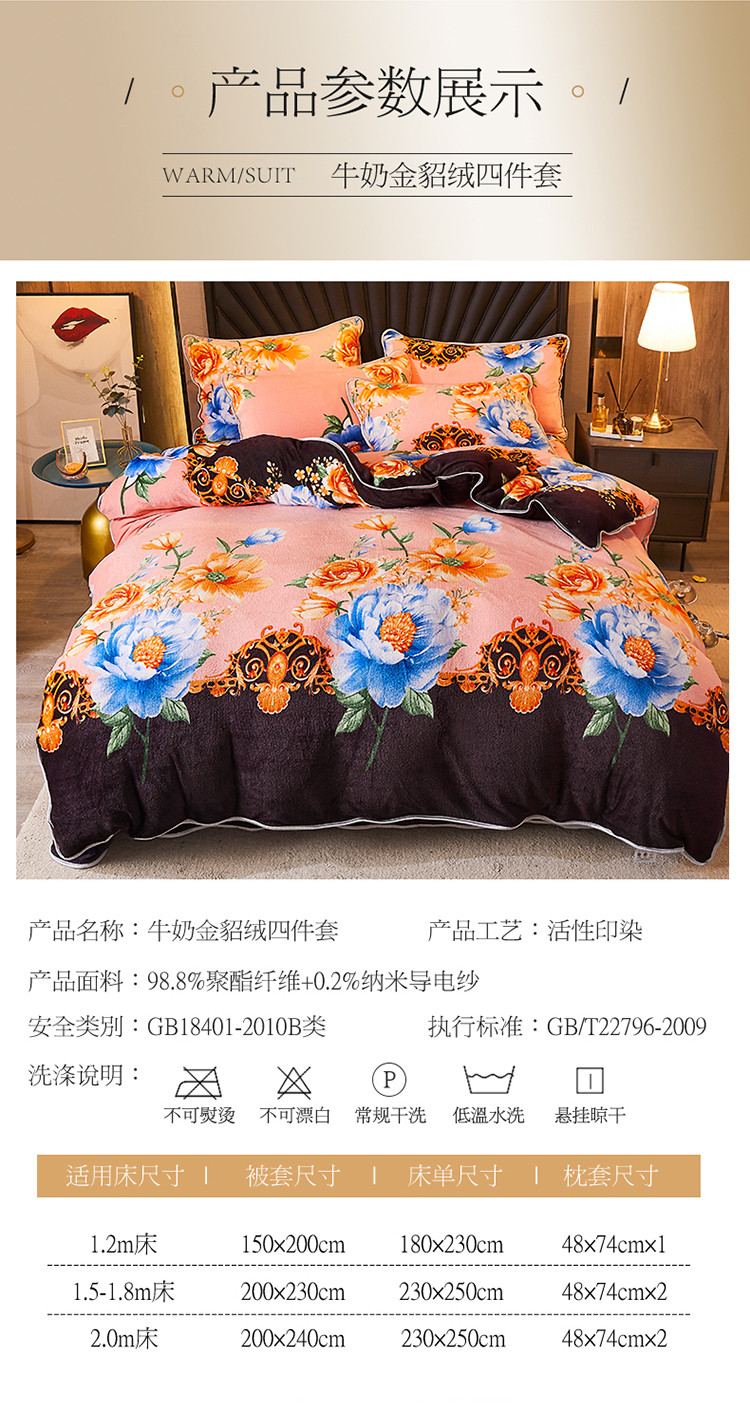 商品名称:迷仙巢 2020新款牛奶金貂绒四件套 盛世年华