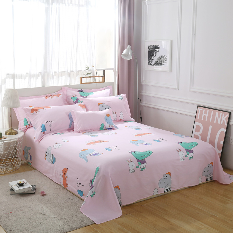 雨萝家纺 2020新款12868全棉纯棉床单 萌宠世界