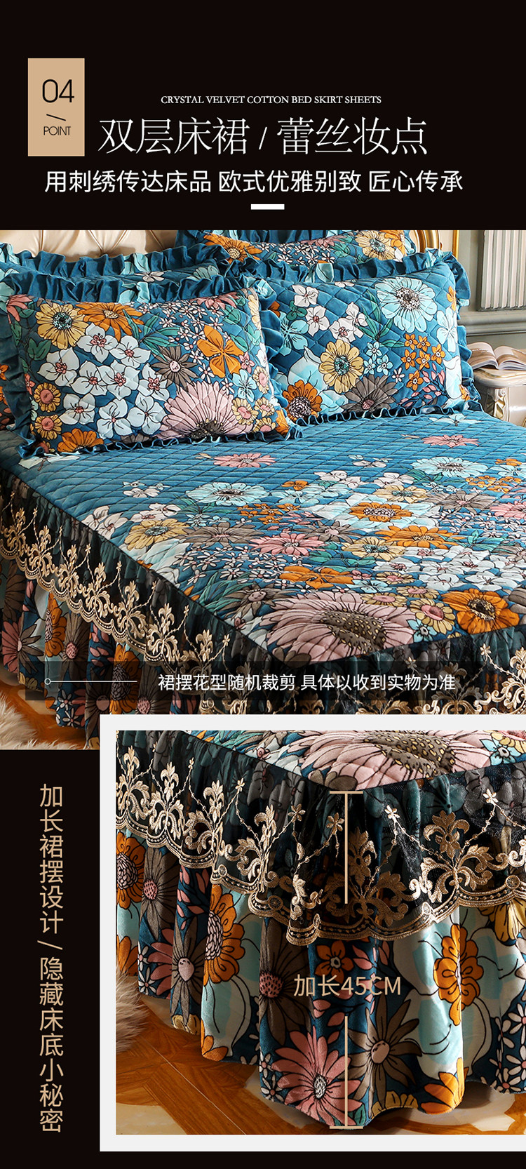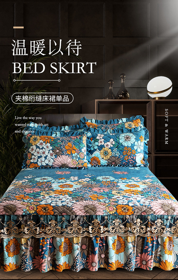 (总)宜凡家纺 2026新款全棉法式夹棉床裙款三件套,尘世浮华,春日微光,花黛织梦,曼妙花香,晴空,寻觅花季