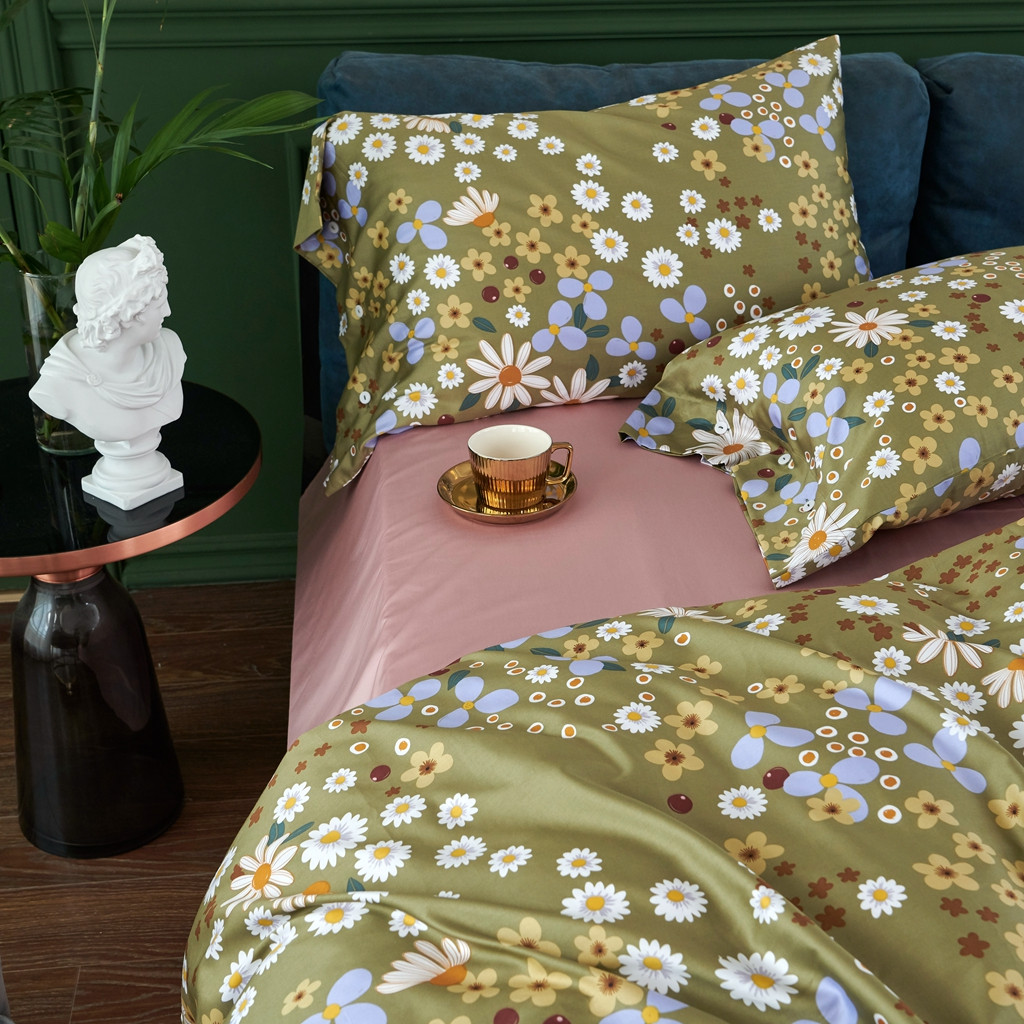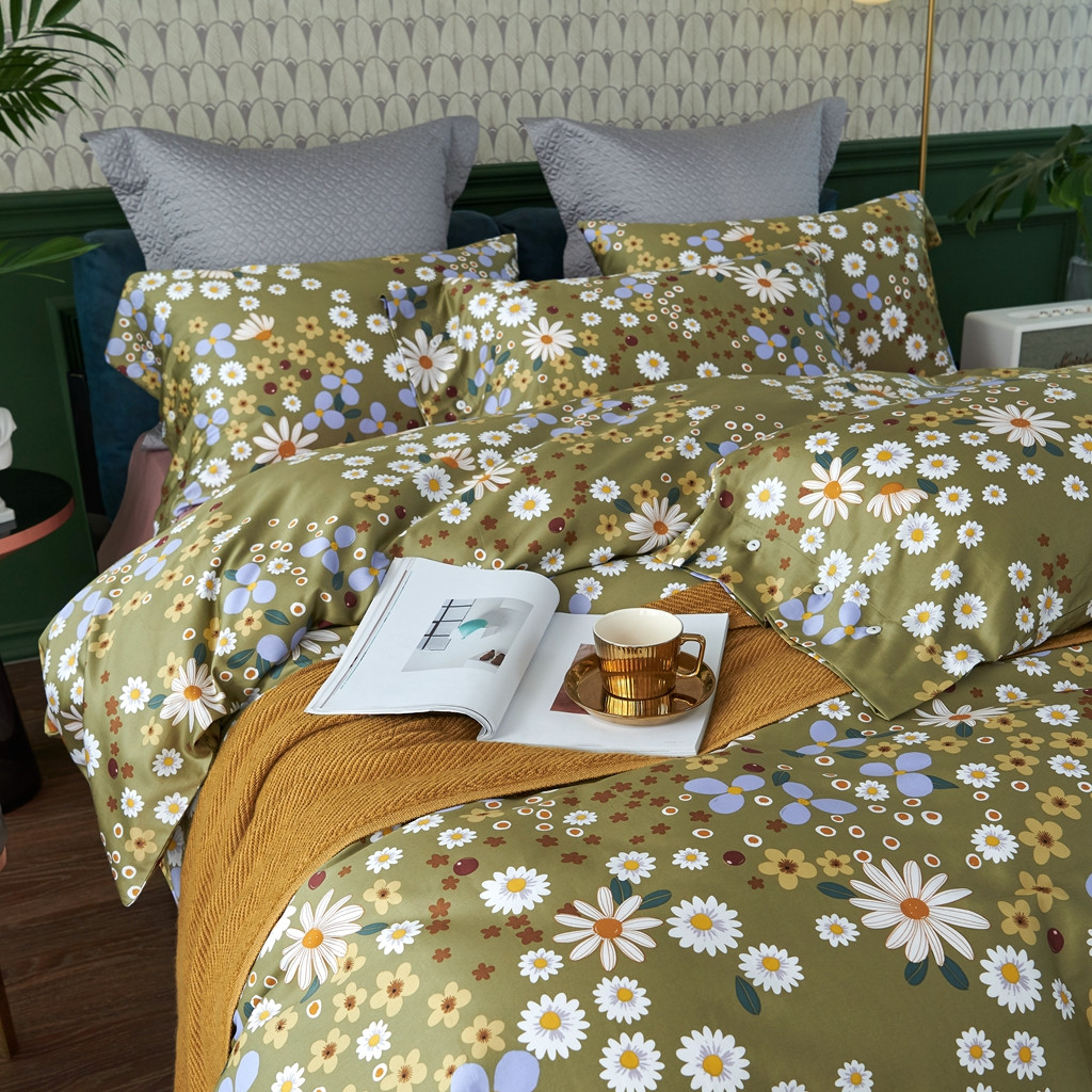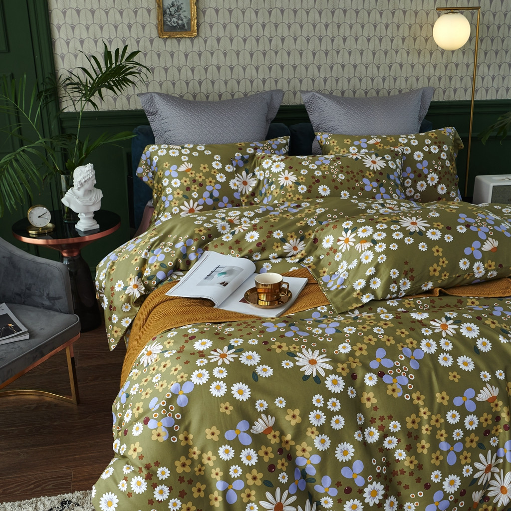 优然居2020新款60S长绒棉活性印花四件套 南笙黄