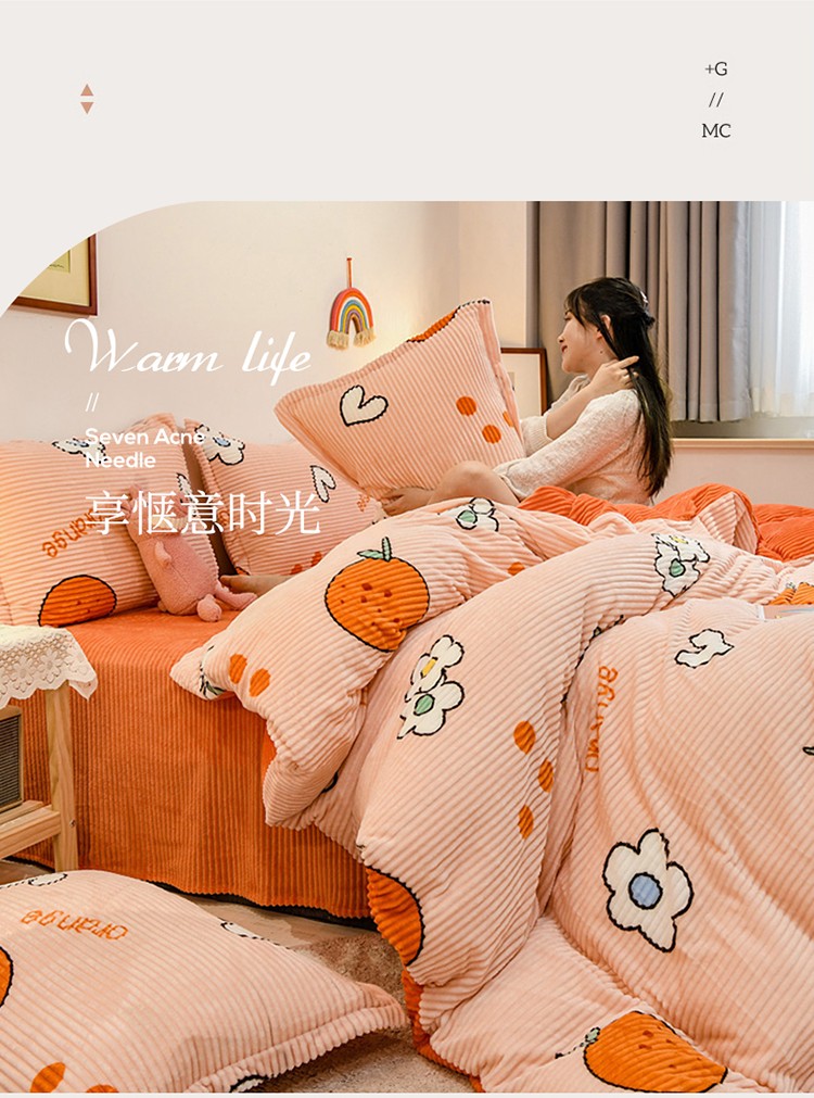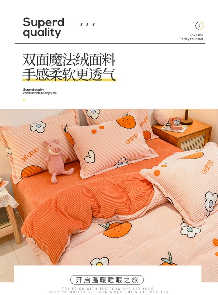 牛奶绒四件套双面金貂法莱水晶魔法宝宝雕花绒被套