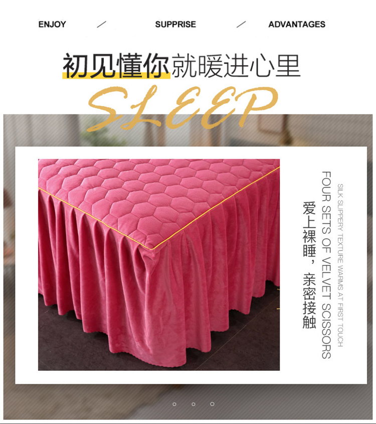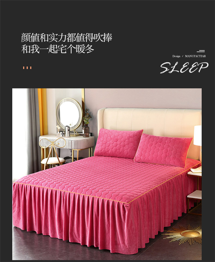 乐逸家纺2023新款牛奶绒水晶法莱绒纯色夹棉床裙唯美裸豆沙