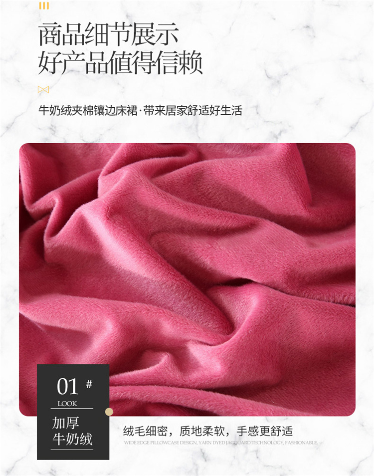 商品名称:乐逸家纺2023新款牛奶绒水晶法莱绒纯色夹棉床裙唯美裸豆沙