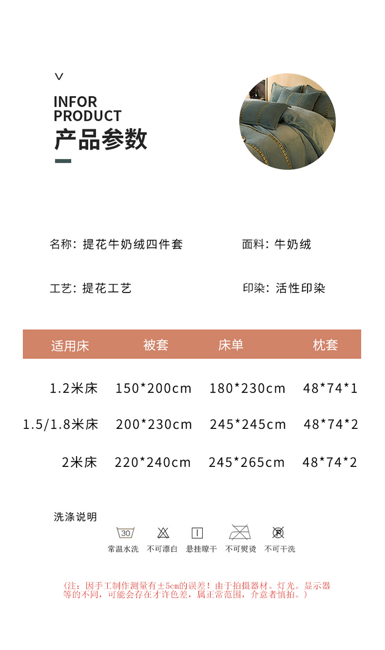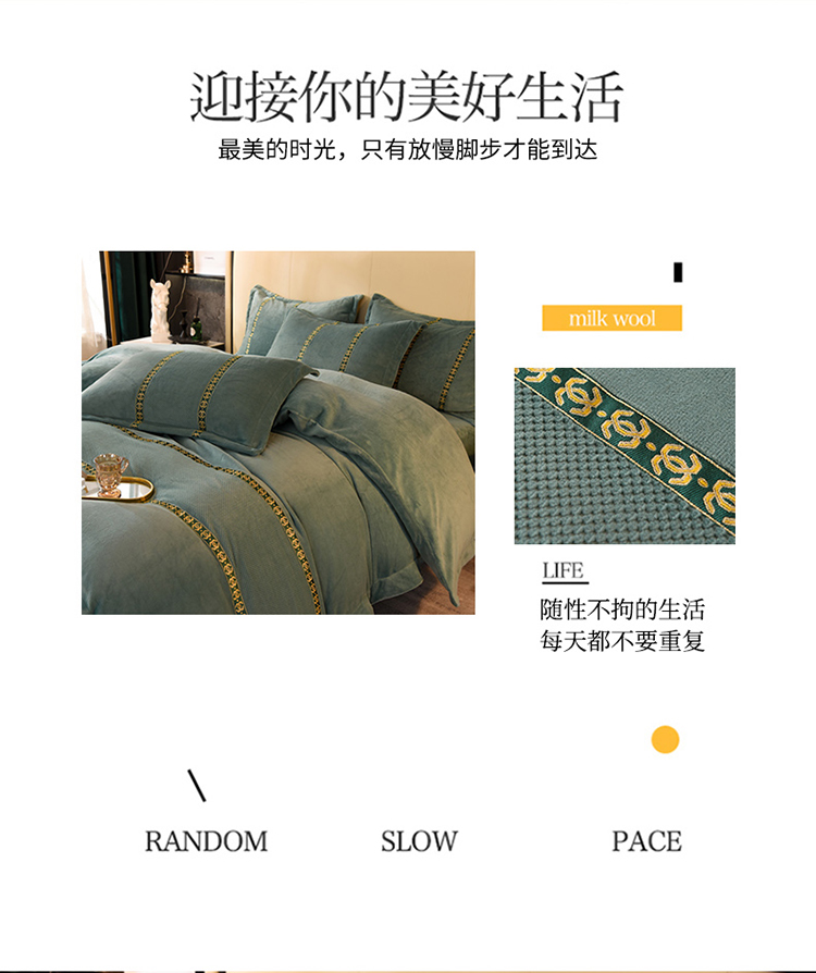 商品名称:七七 2025新款保暖加厚提花牛奶绒四件套 寐语-松石绿