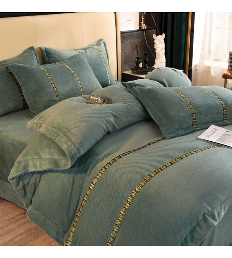 七七 2025新款保暖加厚提花牛奶绒四件套 寐语-松石绿