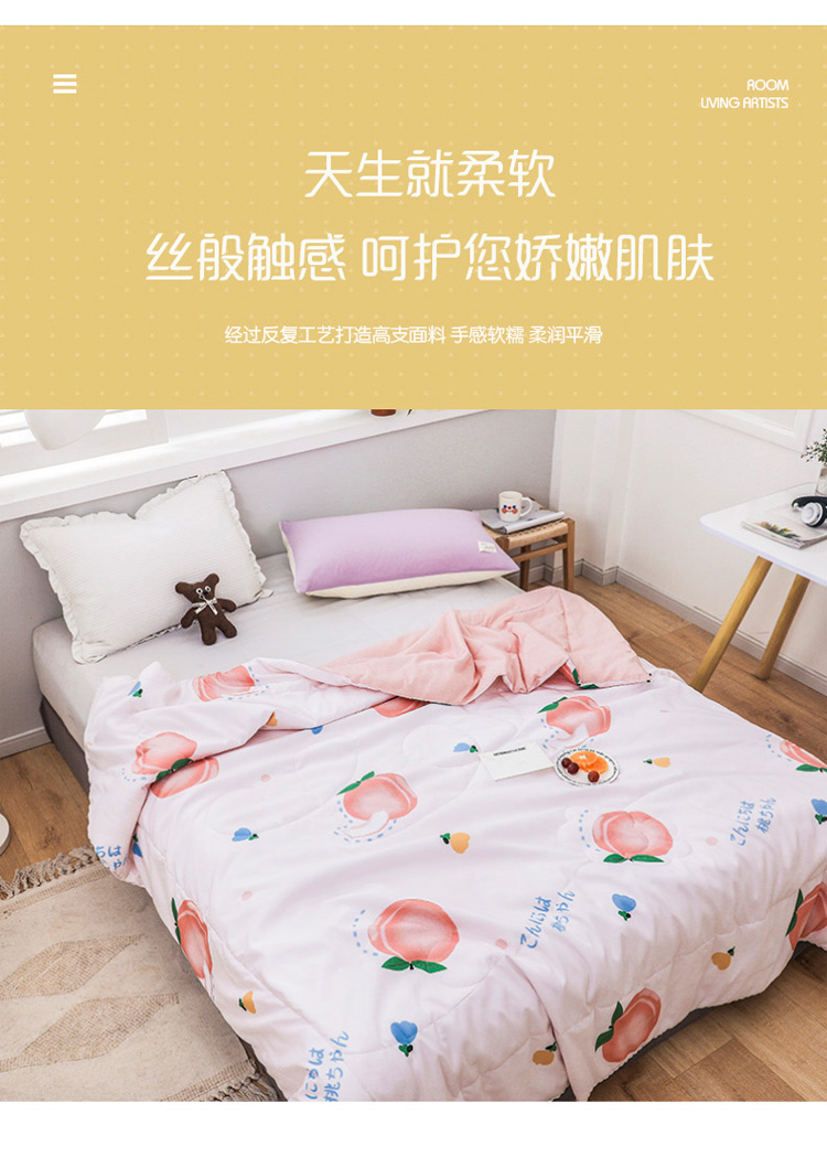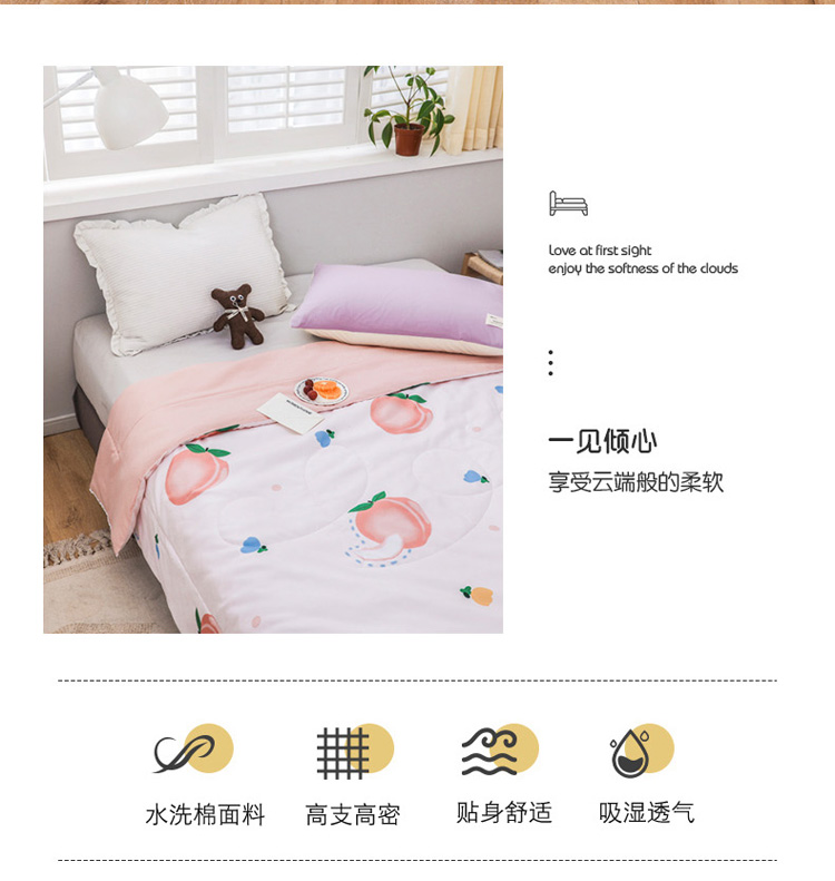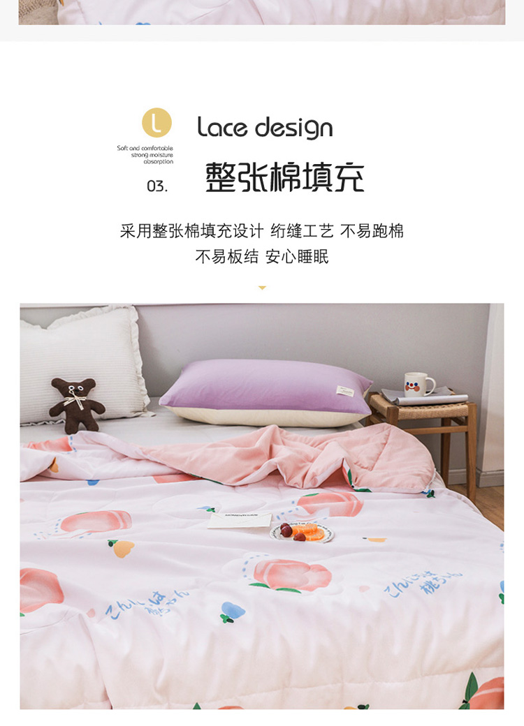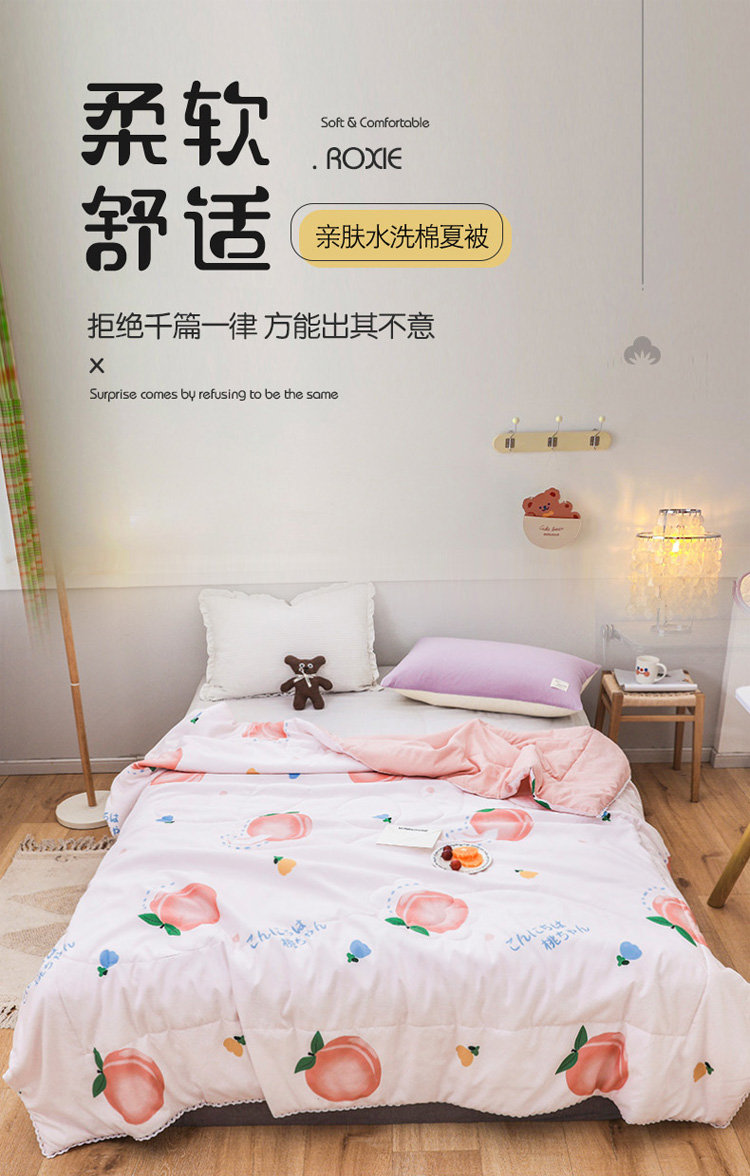 商品名称:寐居 2021新款水洗棉小花边单夏被 水蜜桃