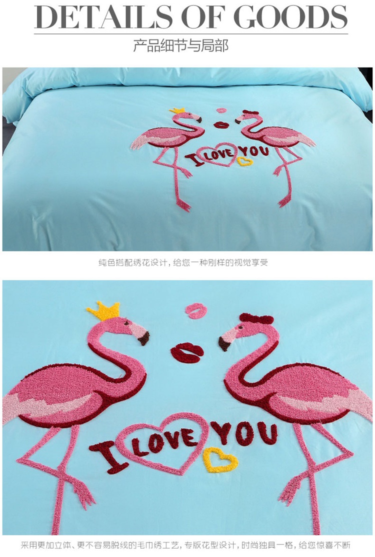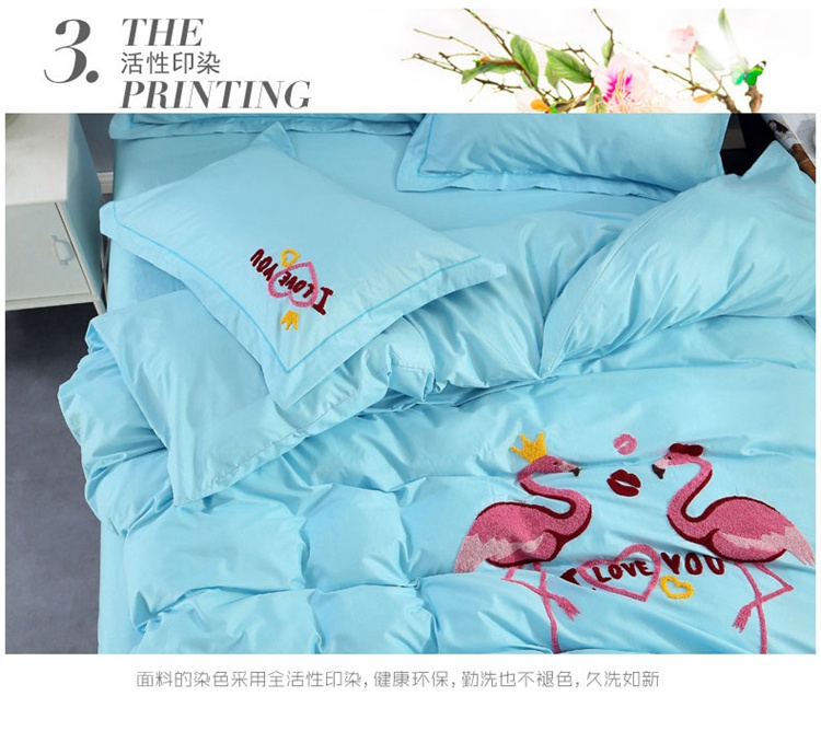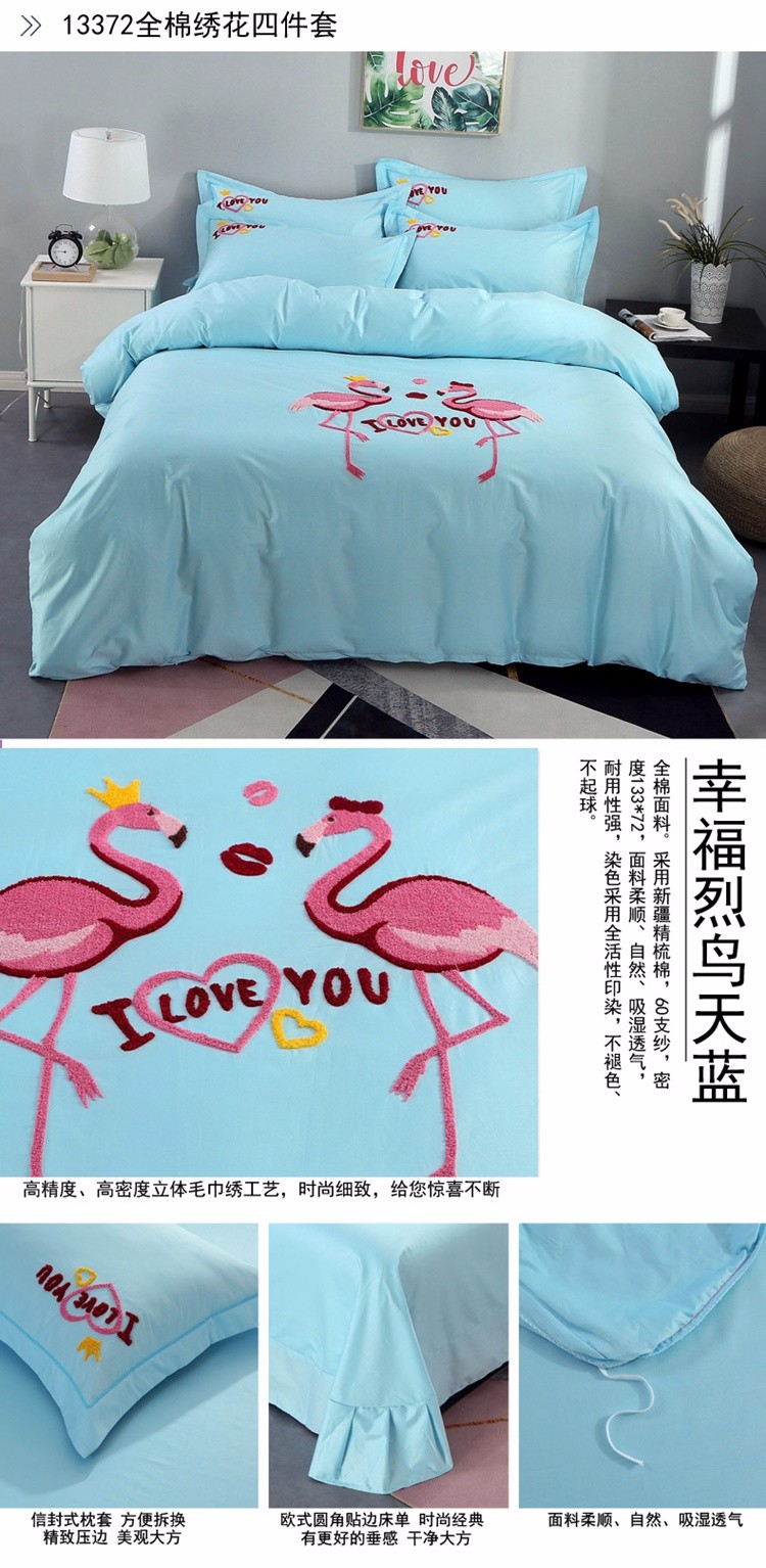 2021新款全棉13372毛巾绣纯棉刺绣花四件套幸福烈鸟天蓝