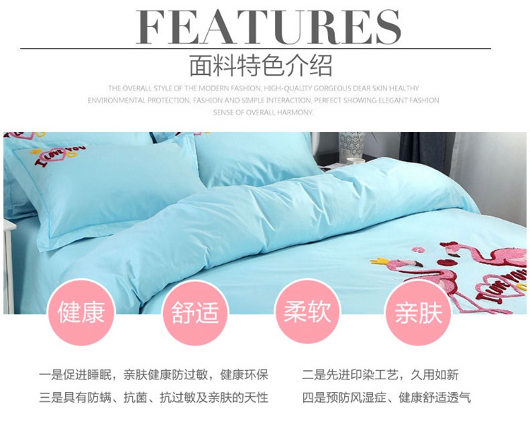 商品名称:2021新款全棉13372毛巾绣纯棉刺绣花四件套幸福烈鸟天蓝