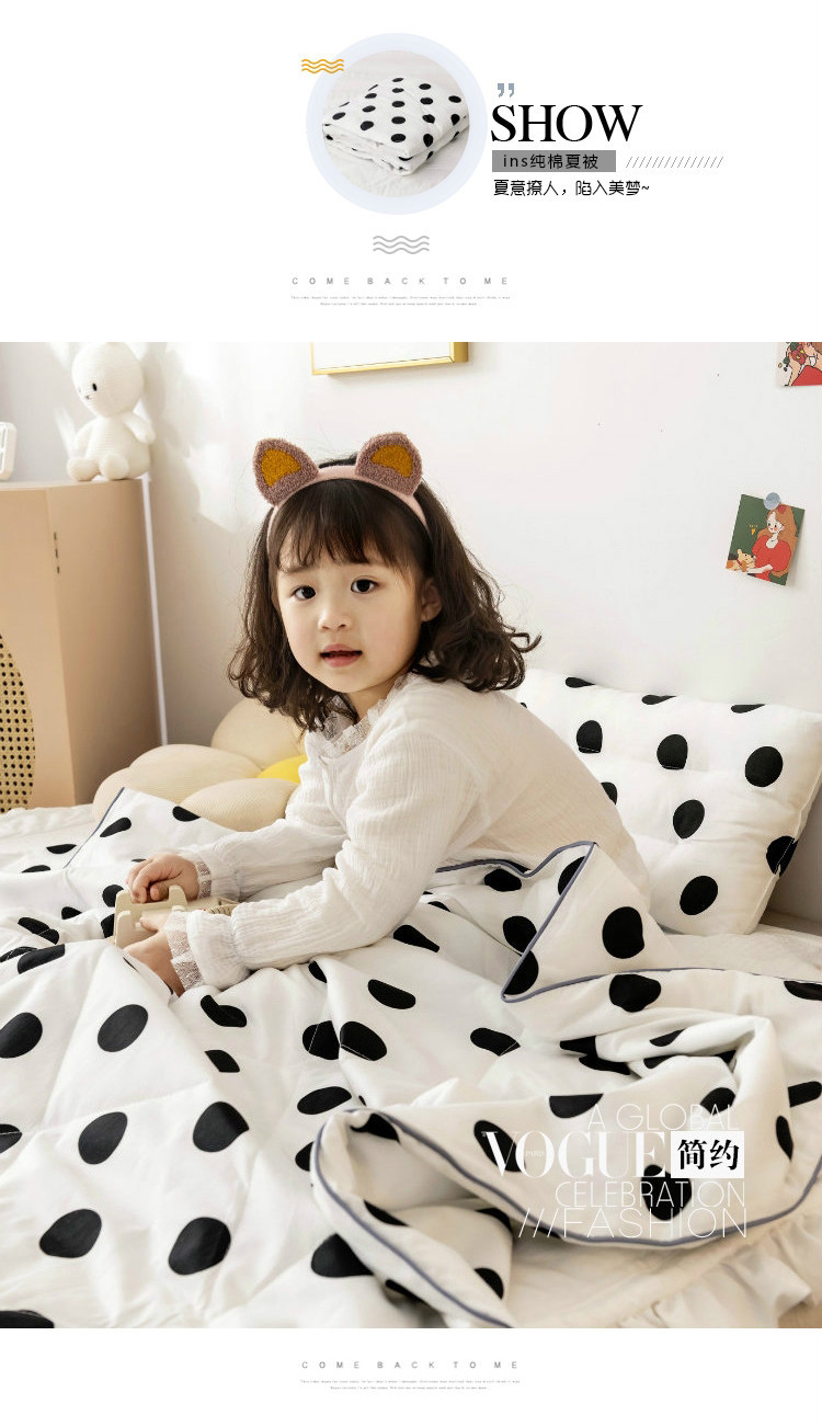 商品名称:十九色 2024新款热卖 ins全棉13372儿童夏被 波点