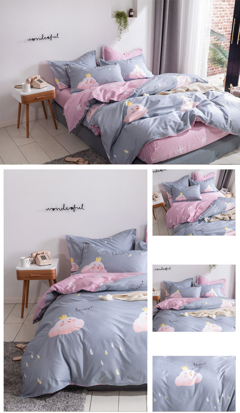 星期三 2021新款卡通系列全棉13372四件套(加老板微信有会员价) 依云-灰