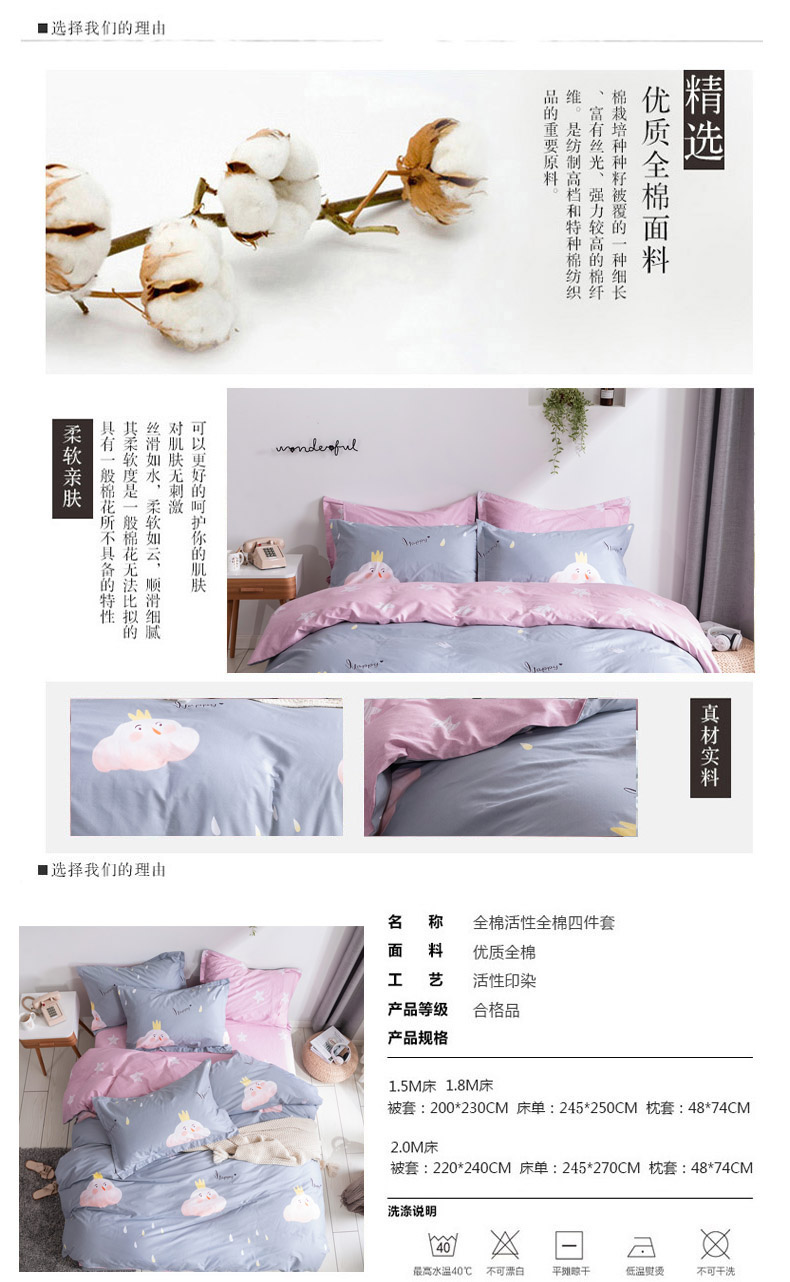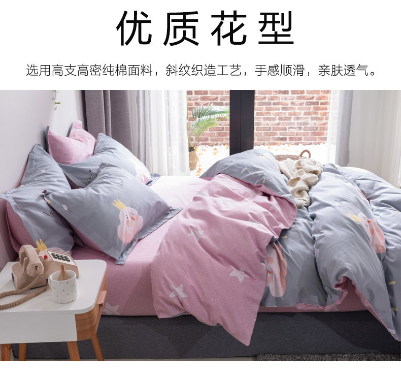 商品名称:星期三 2021新款卡通系列全棉13372四件套(加老板微信有会员价) 依云-灰