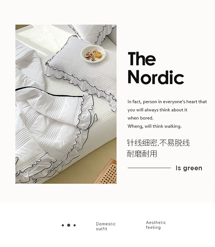 (总)漫调家纺 2025新款全棉ins风蝴蝶结韩系奶油花边床盖三件套,奶油白,奶油粉,奶油杏