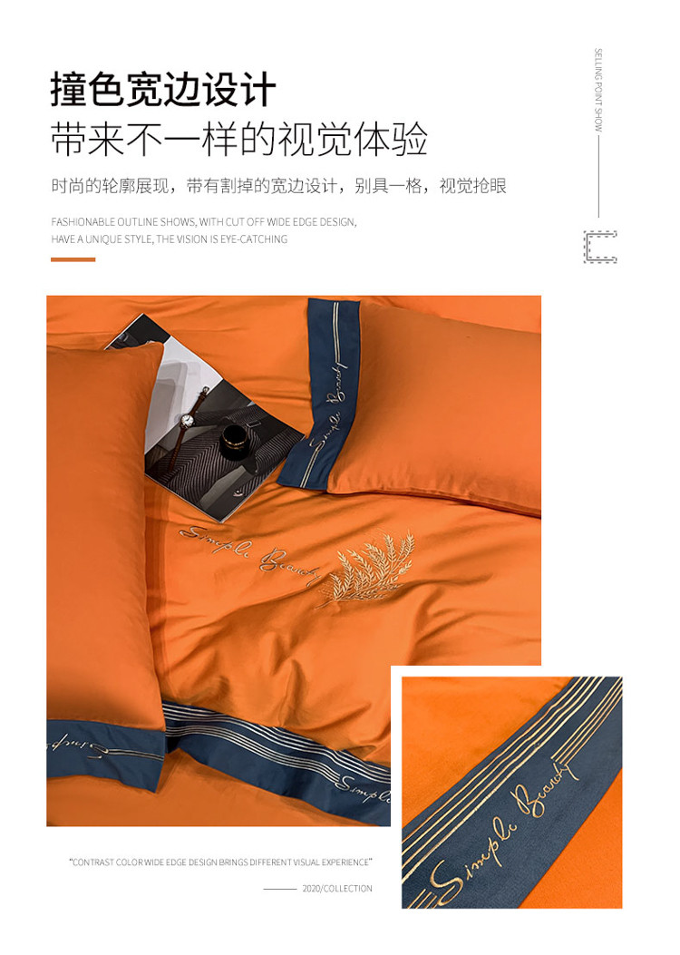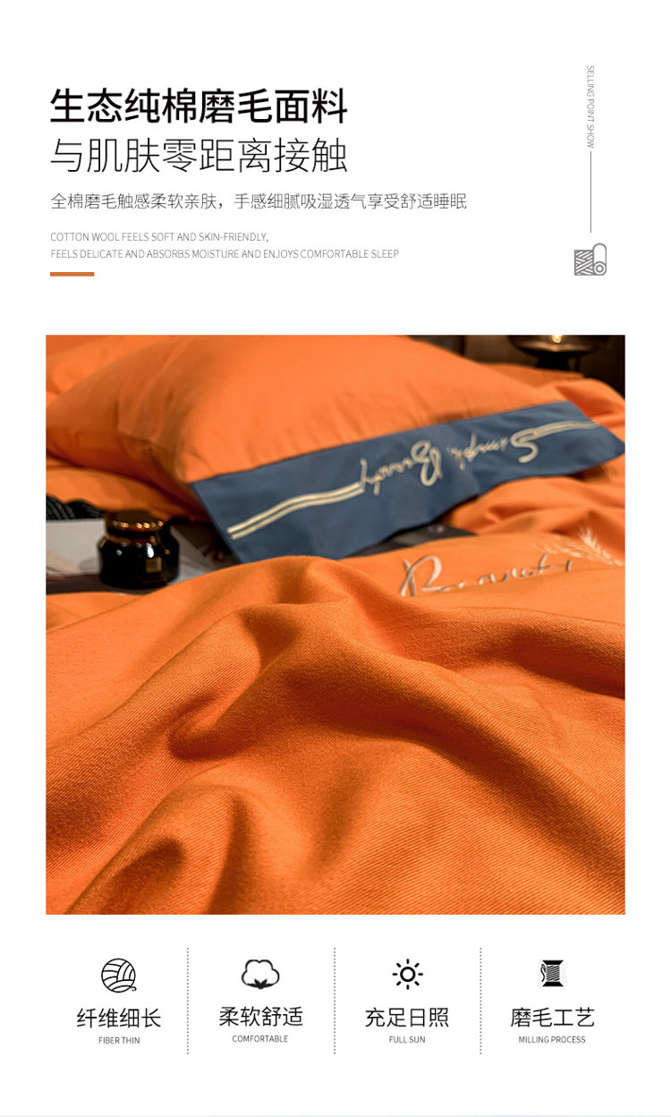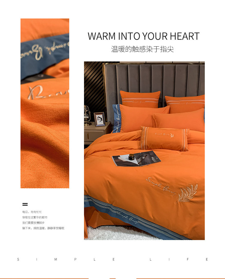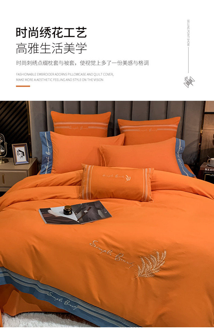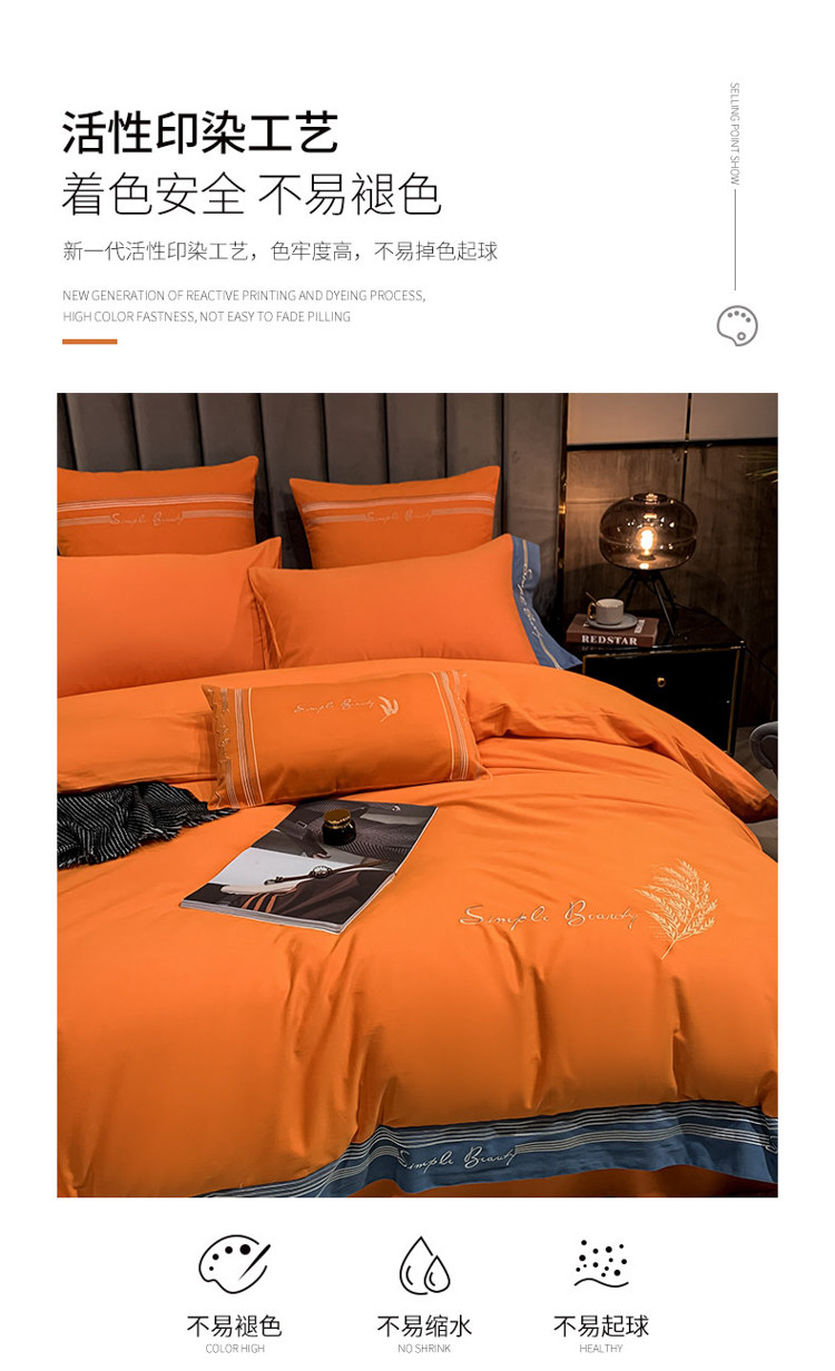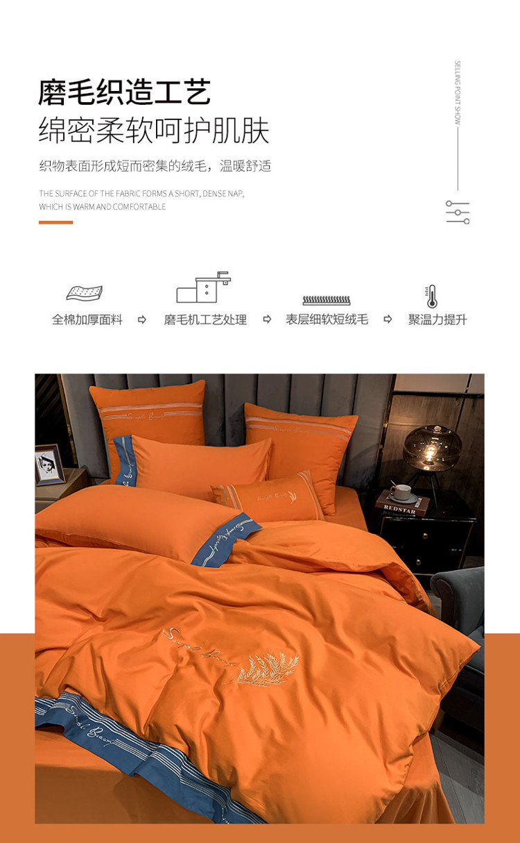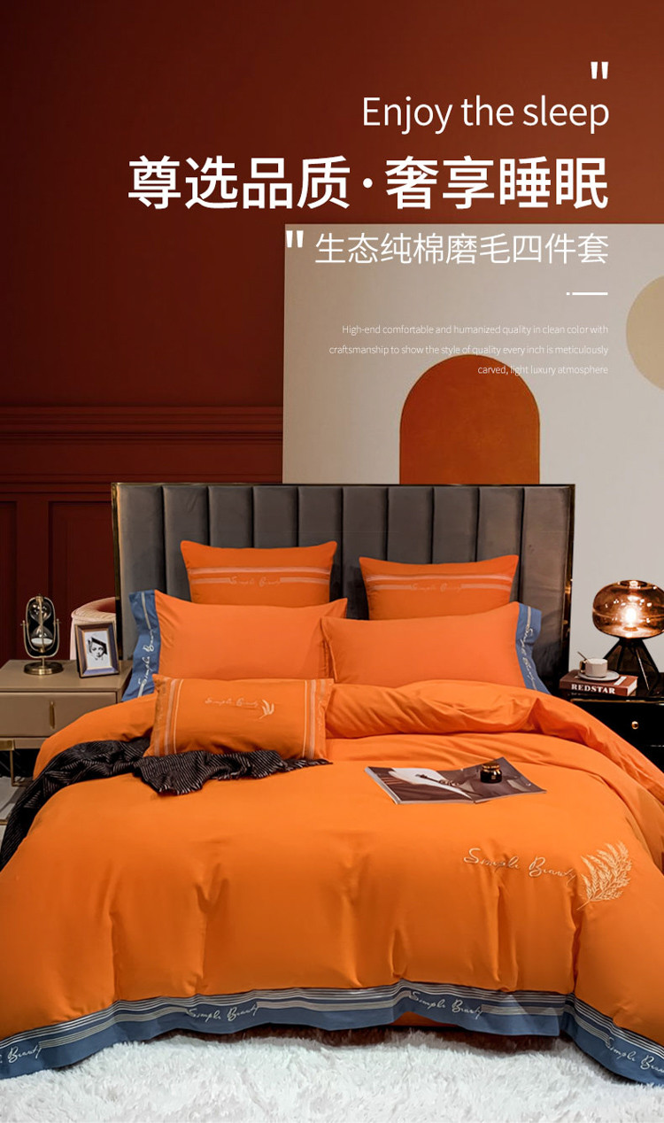 博纳家纺 2021新款40S全棉磨毛四件套纯棉—赛琳娜 爱马仕橙